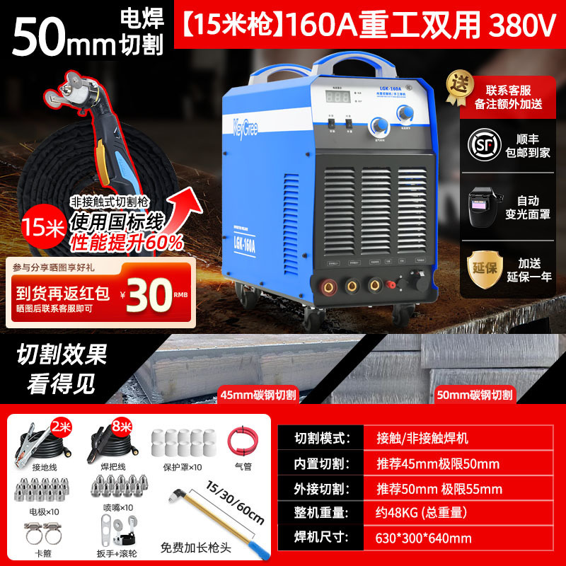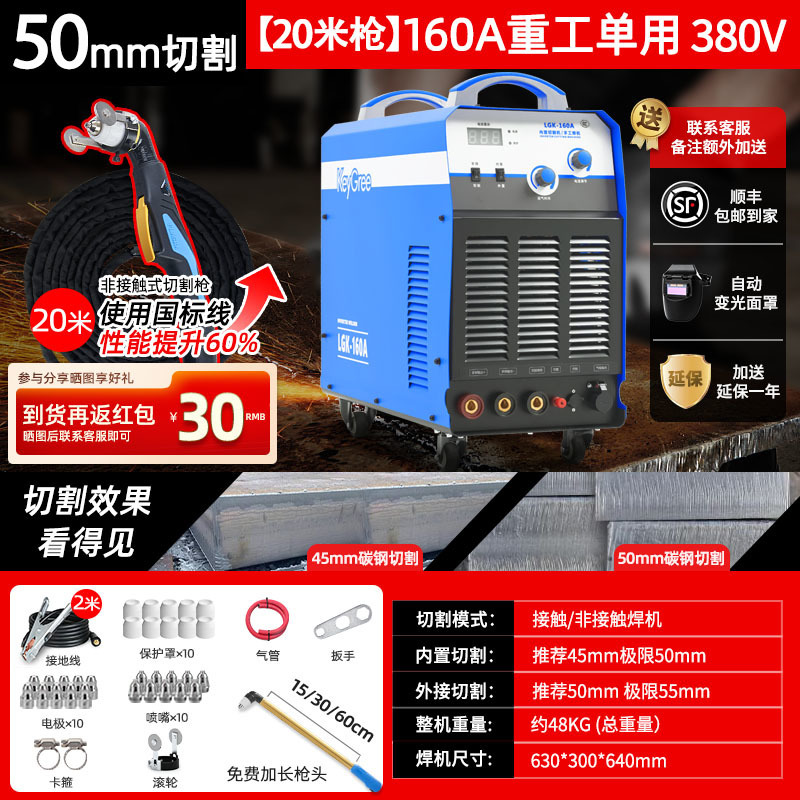 切割厚度50mm+电焊【160】三相电15米-源于欧洲无需空压机接电即切割