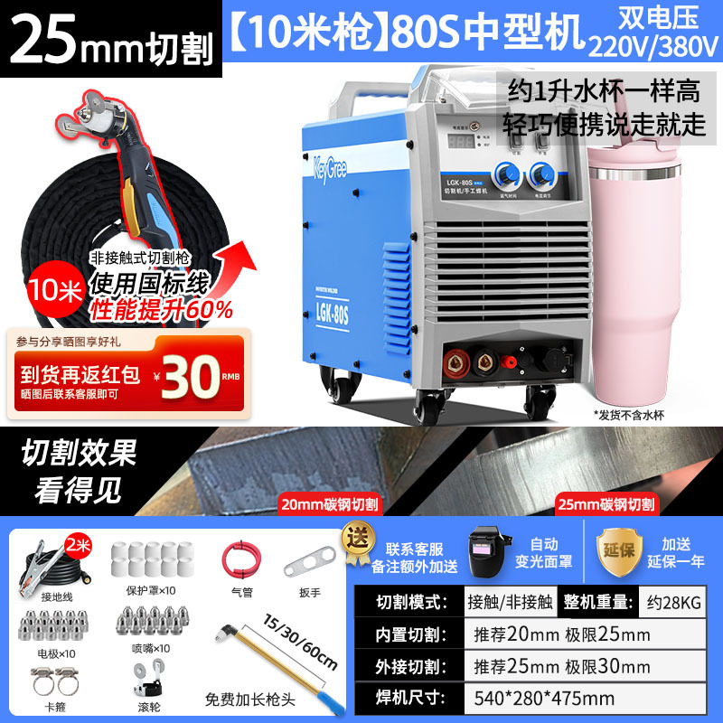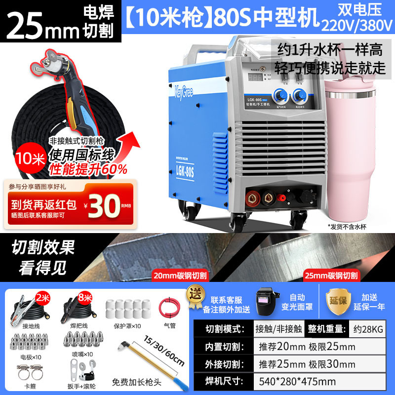 切割厚度25mm+电焊【80S】双电压10米-源于欧洲无需空压机接电即切割