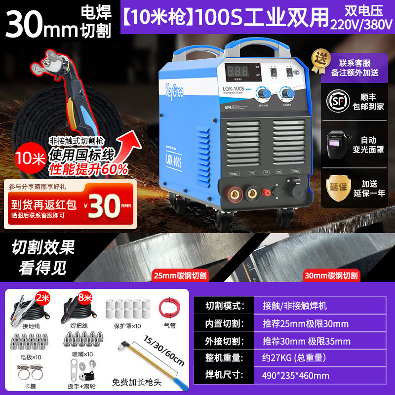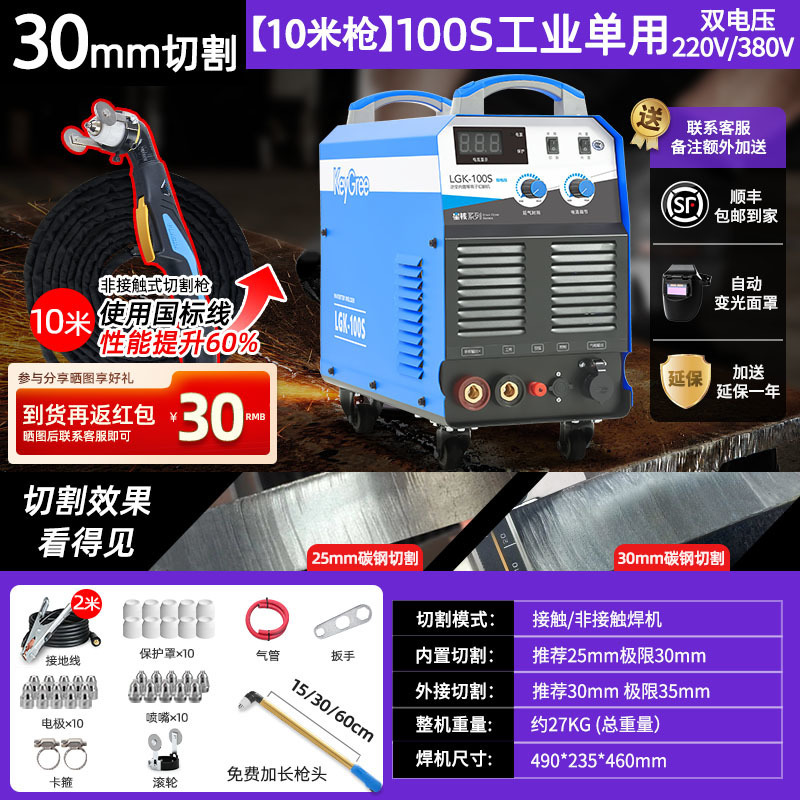 切割厚度30mm+电焊【100】双电压10米-源于欧洲无需空压机接电即切割