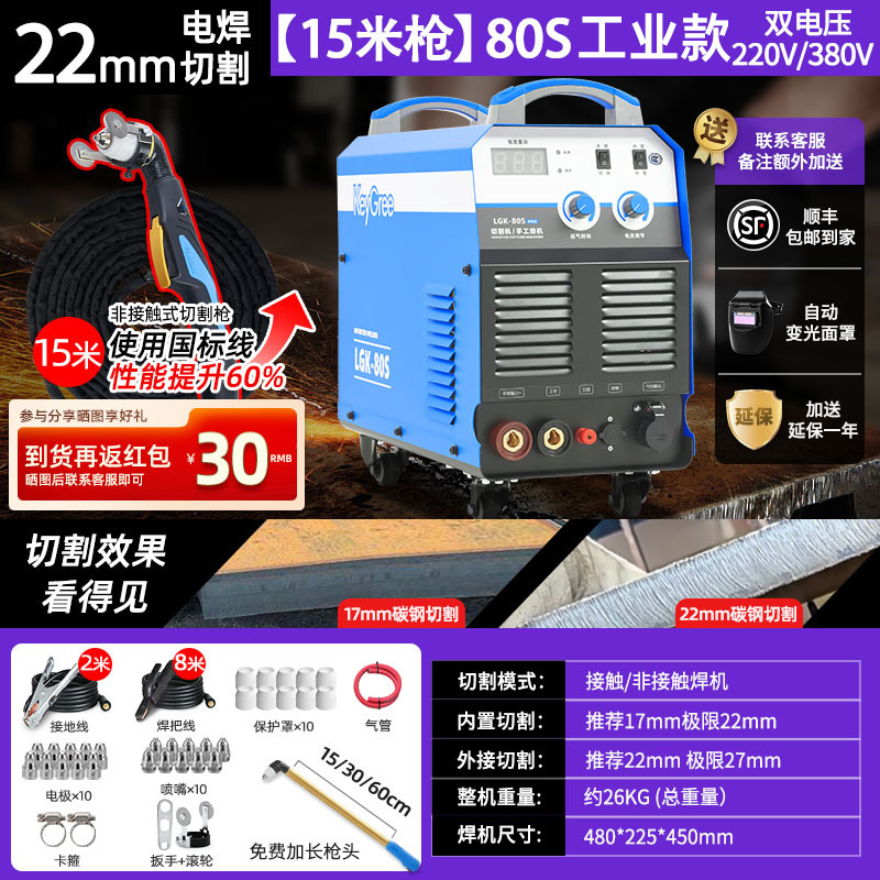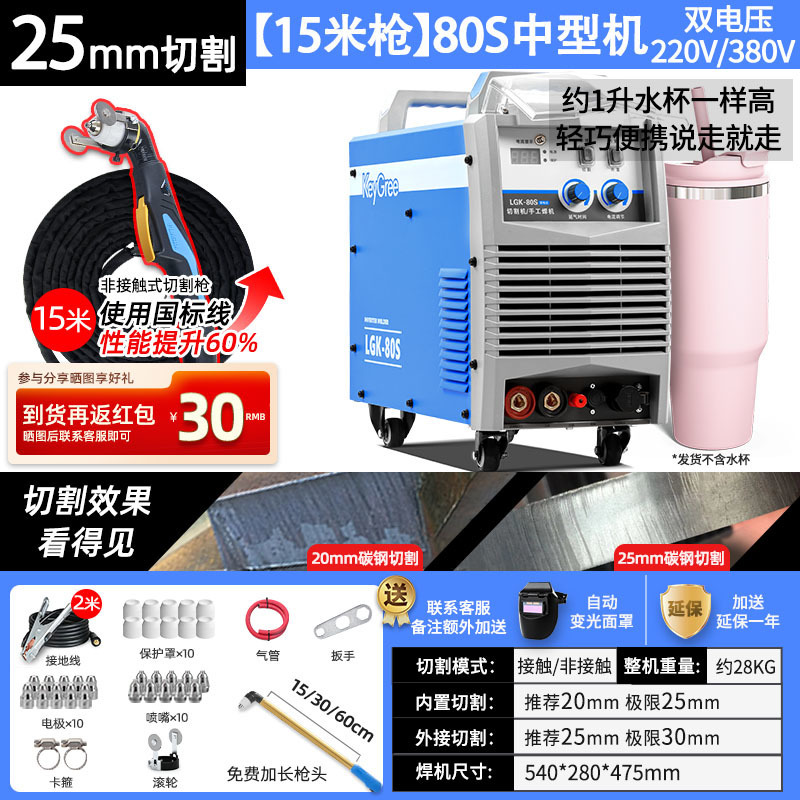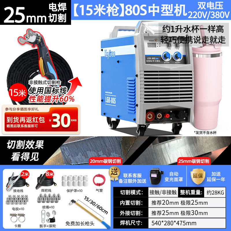 切割厚度25mm+电焊【80S】双电压15米-源于欧洲无需空压机接电即切割