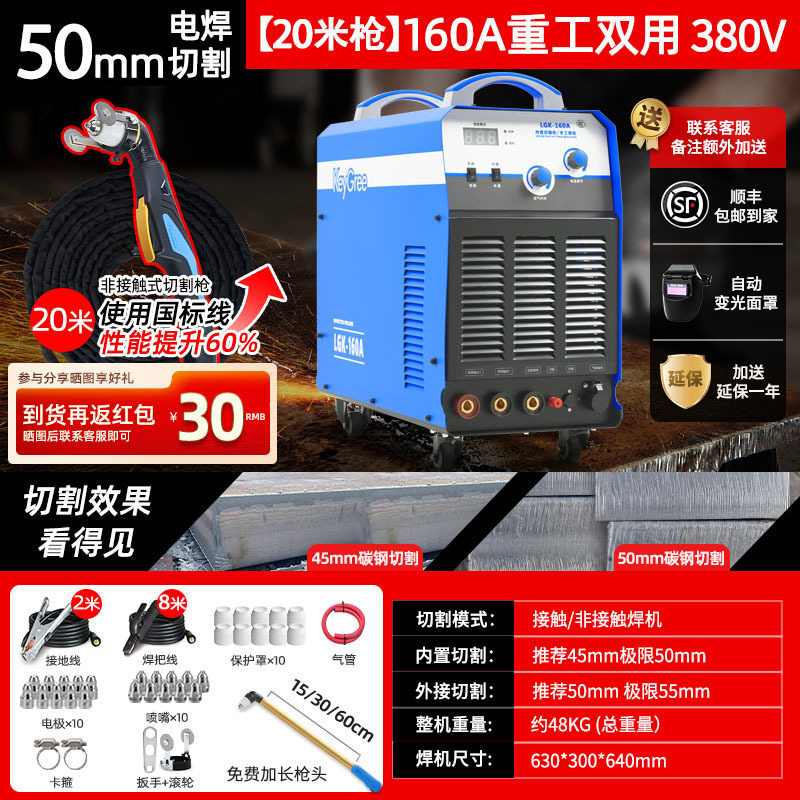 切割厚度50mm+电焊【160】三相电20米-源于欧洲无需空压机接电即切割