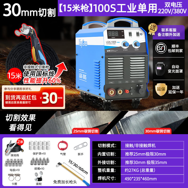 切割厚度30mm+电焊【100】双电压15米-源于欧洲无需空压机接电即切割