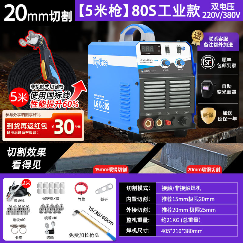 切割厚度20mm+电焊【80】双电压10米枪-源于欧洲无需空压机接电即切割
