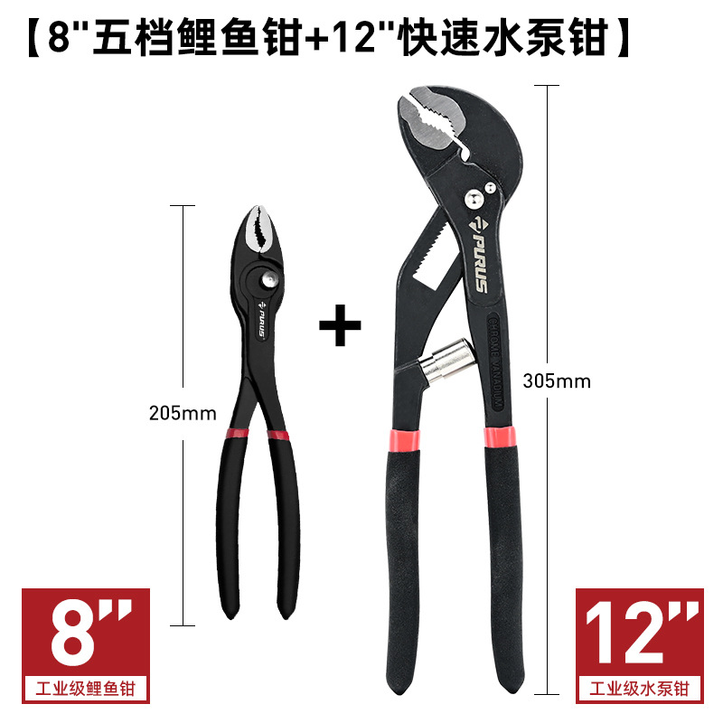 升级款8寸鲤鱼钳+12寸自调式水泵钳【省6元】