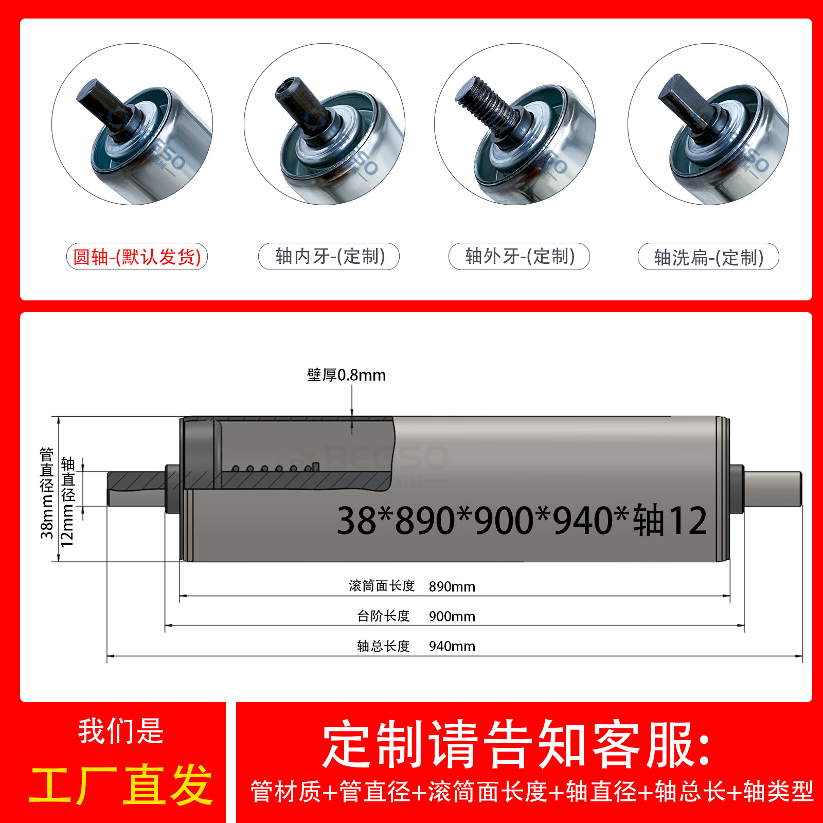不锈钢38*长890*轴12长940