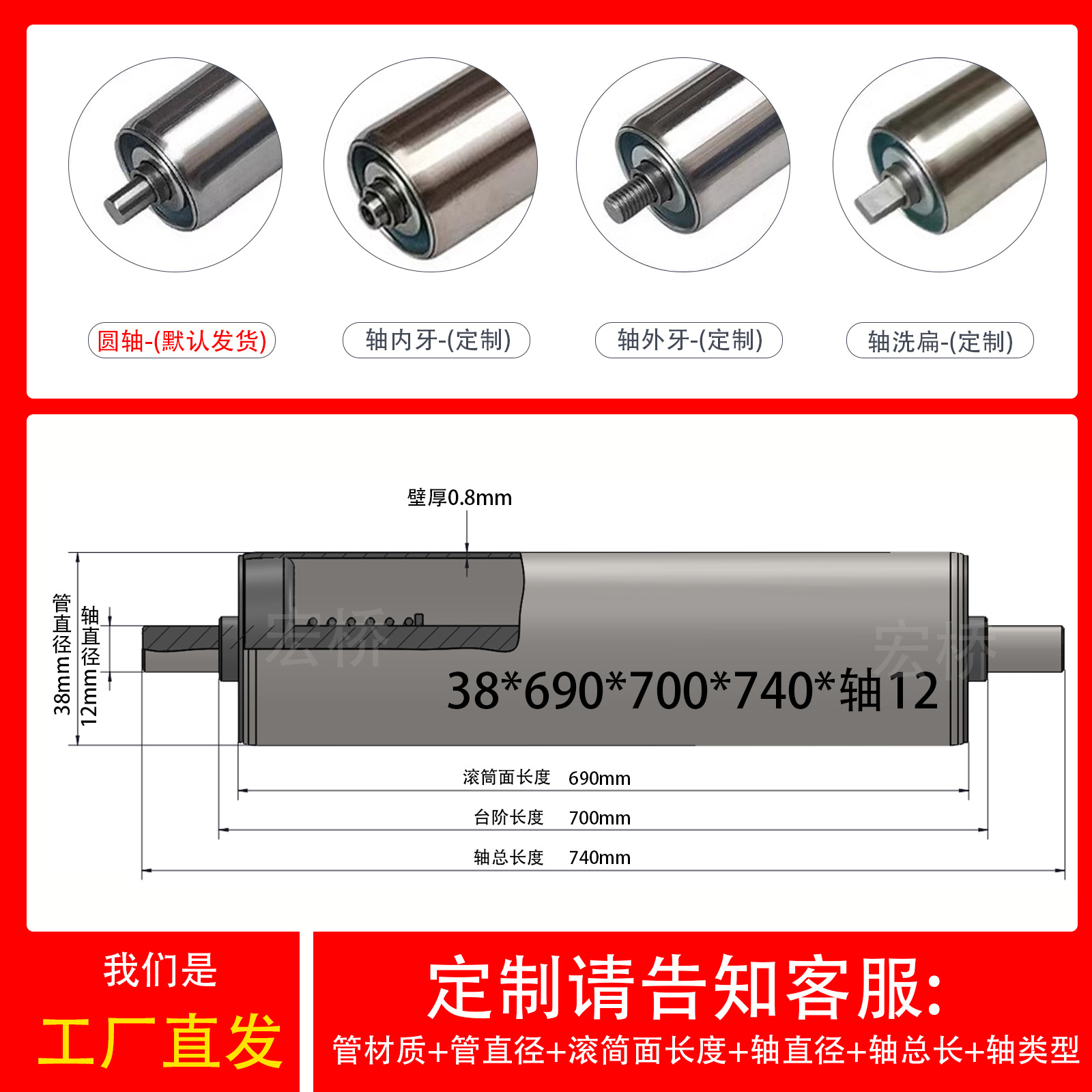不锈钢38*长690*轴12长740