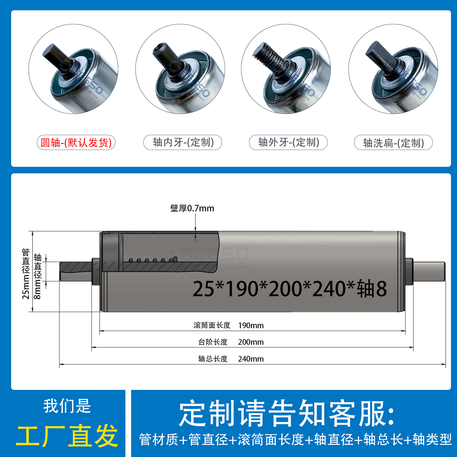 不锈钢25*长190*轴8长240