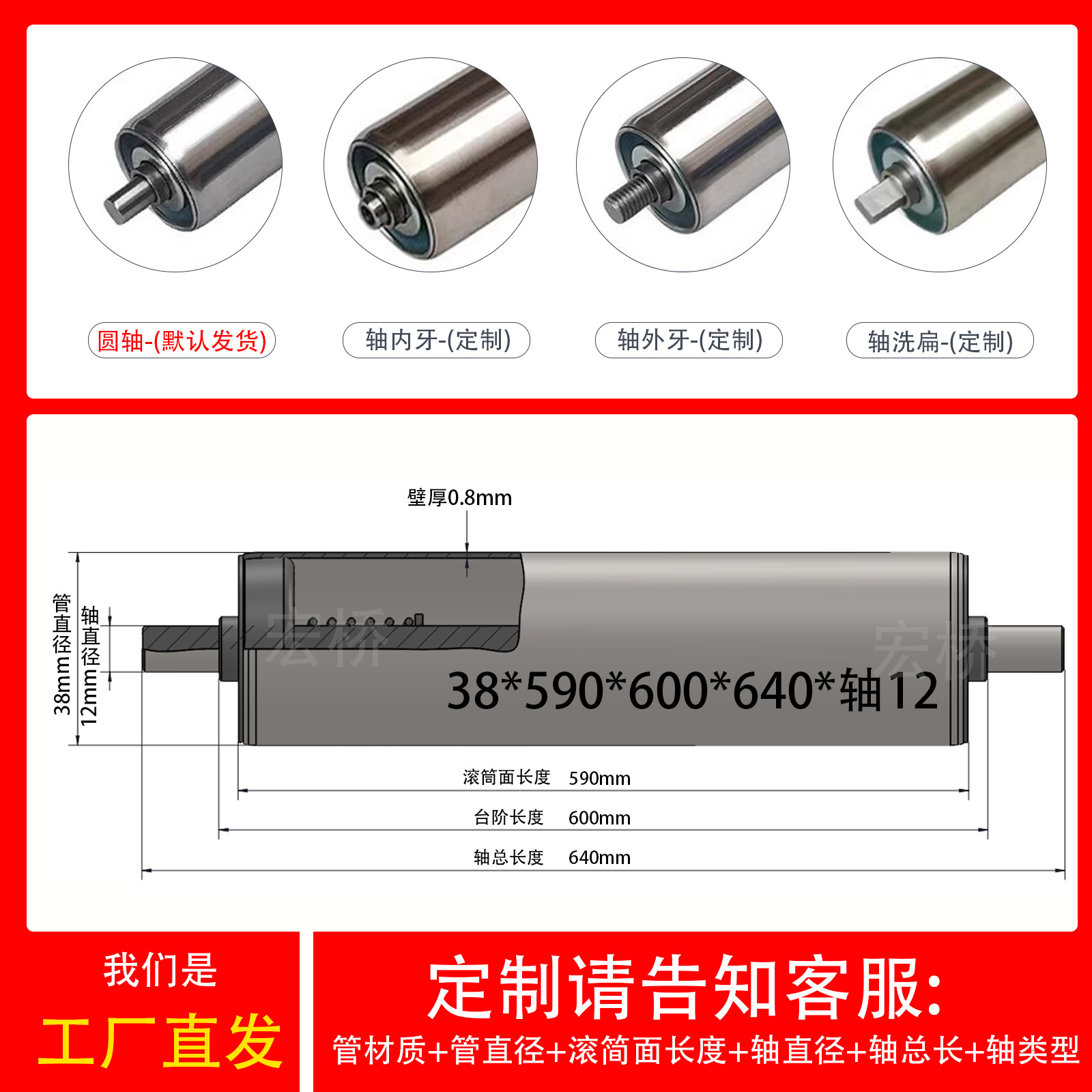 不锈钢38*长590*轴12长640