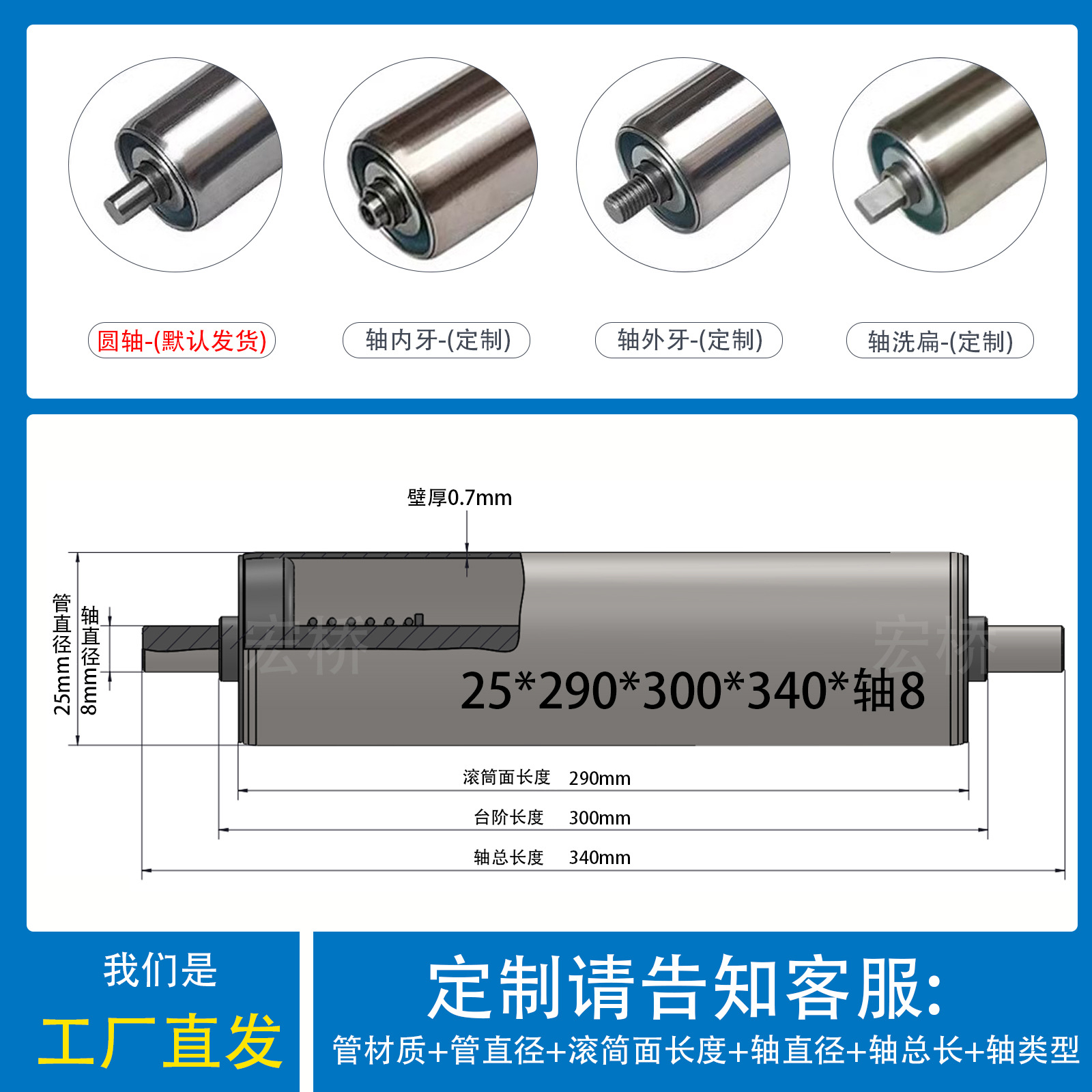 不锈钢25*长290*轴8长340