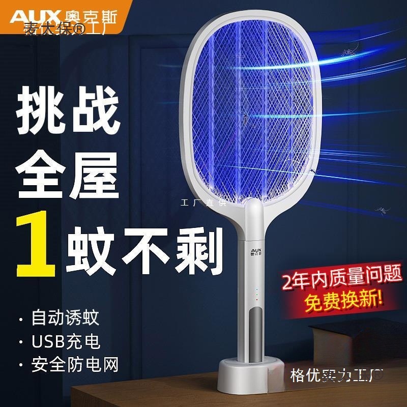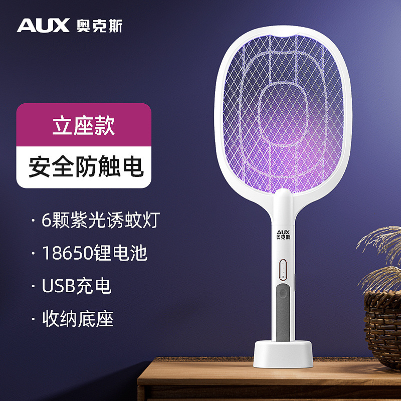 豪华大拍面款【6颗紫光诱蚊灯+锂电池+USB充电+加大网面+底座充电】