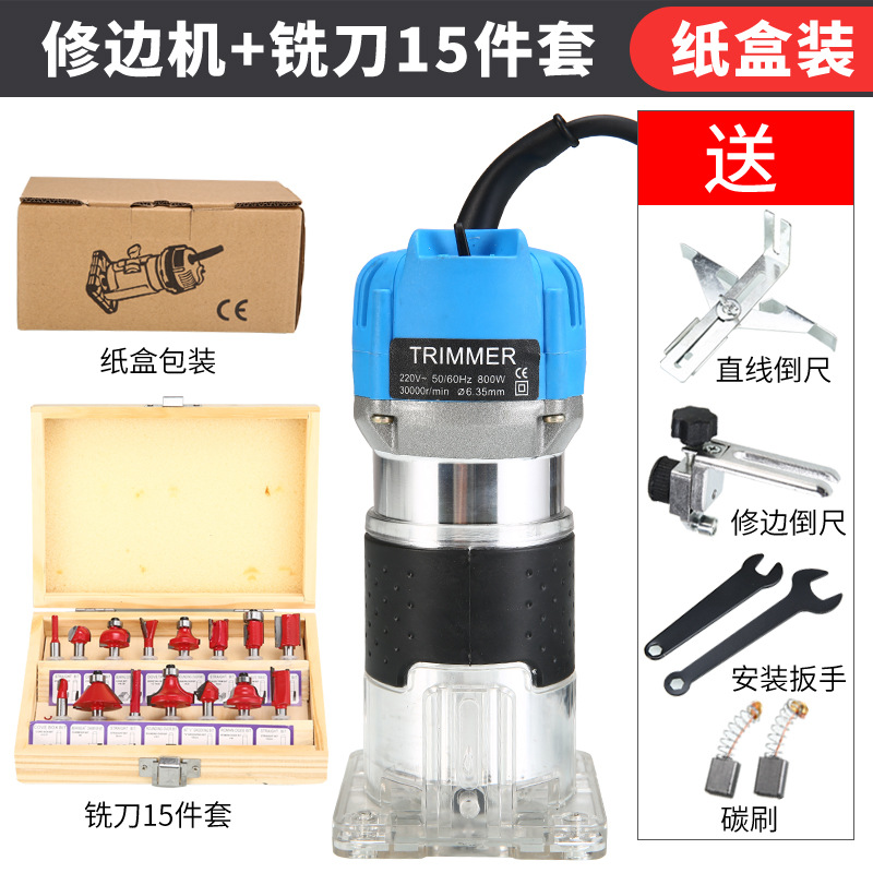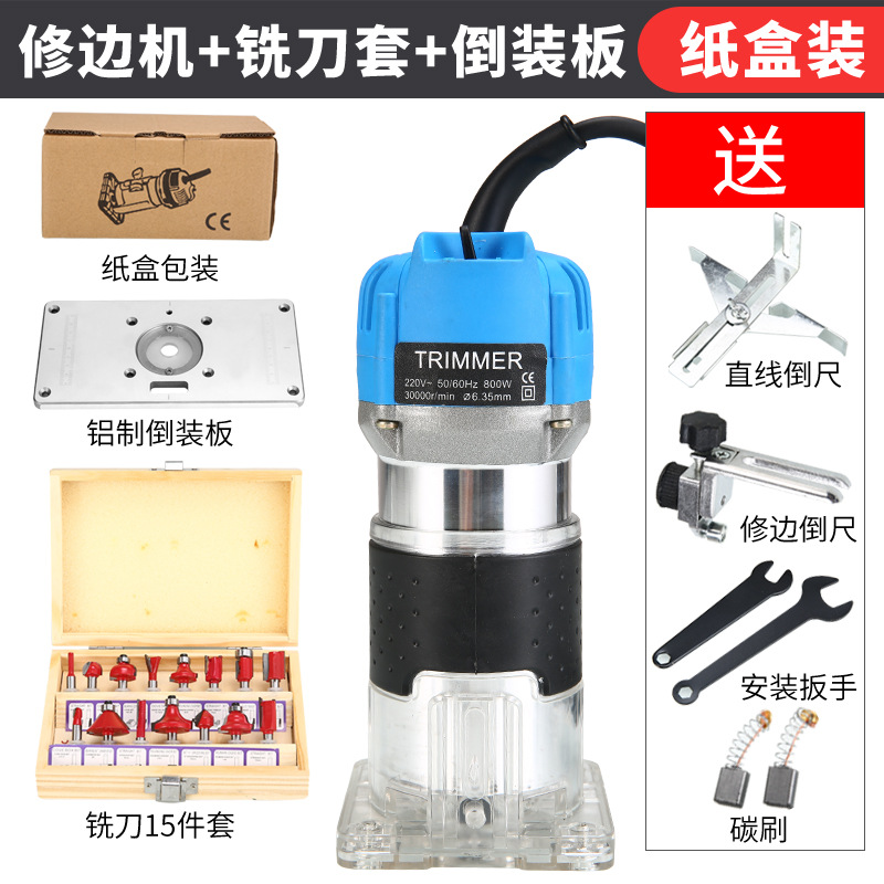 天蓝色铝体修边机(纸盒装)+15件套铣刀套餐