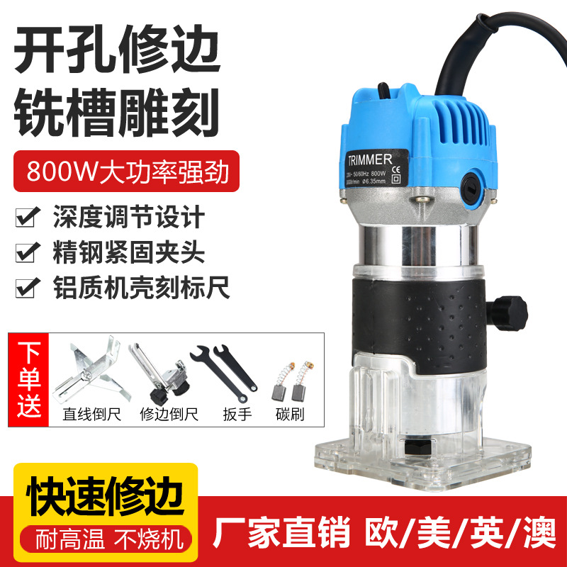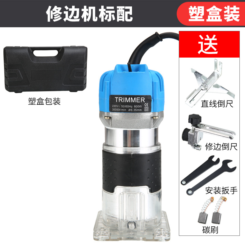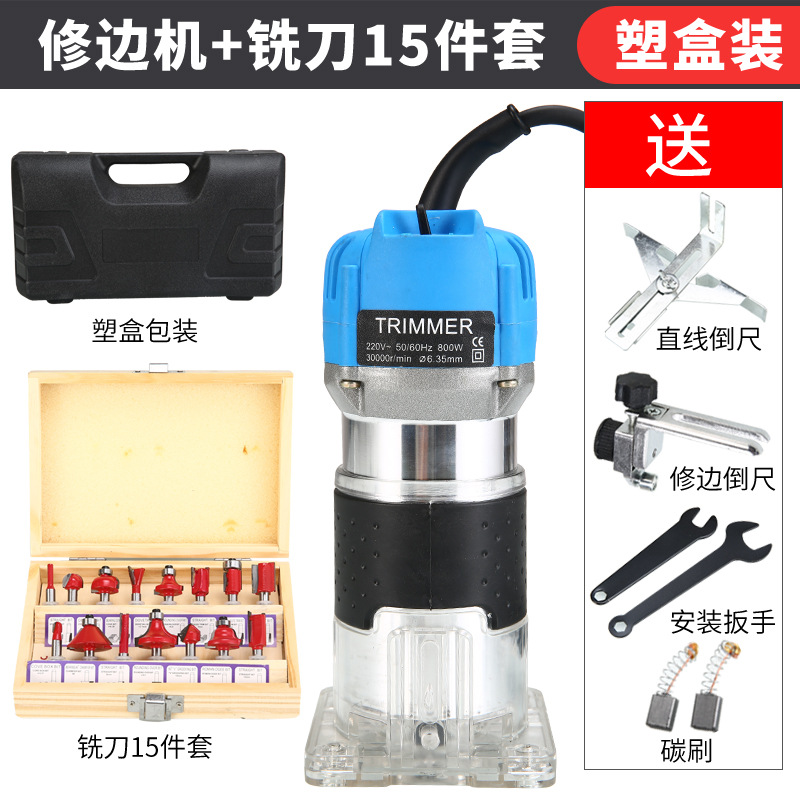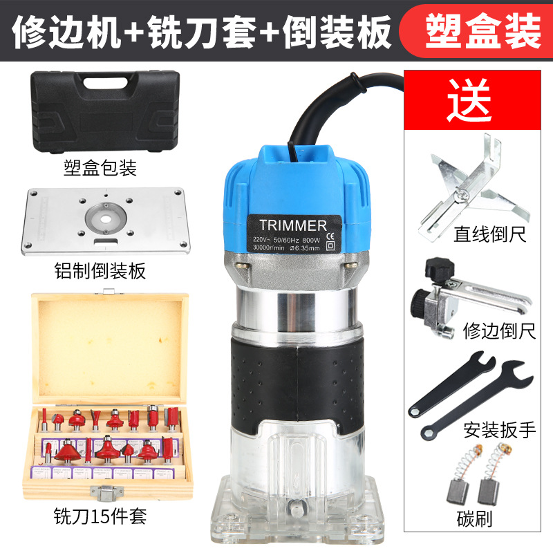 天蓝色铝体修边机(塑料箱装)+15件套铣刀套餐
