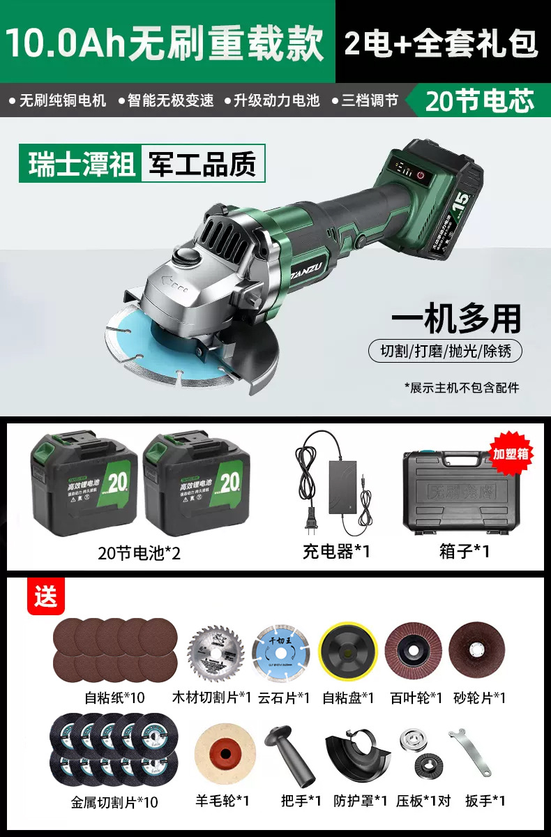 无刷重载款续航王【20节10.0Ah两电】塑箱+全套礼包