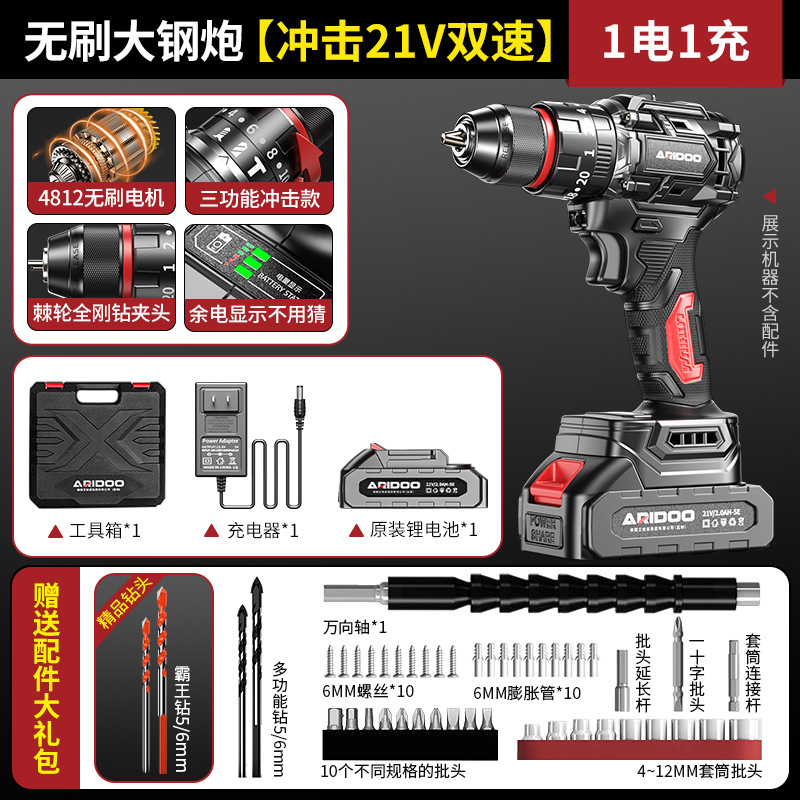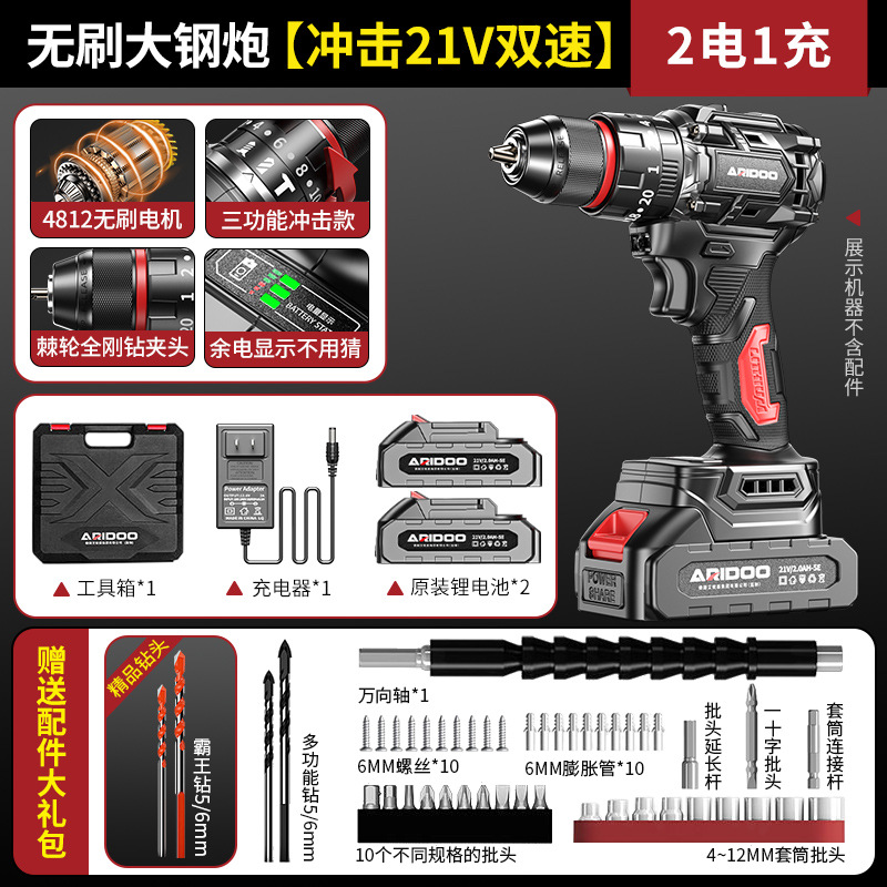 高品质-无刷大钢炮【冲击21V双速2电1充】+赠送配件大礼包