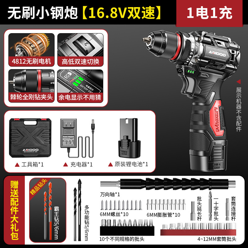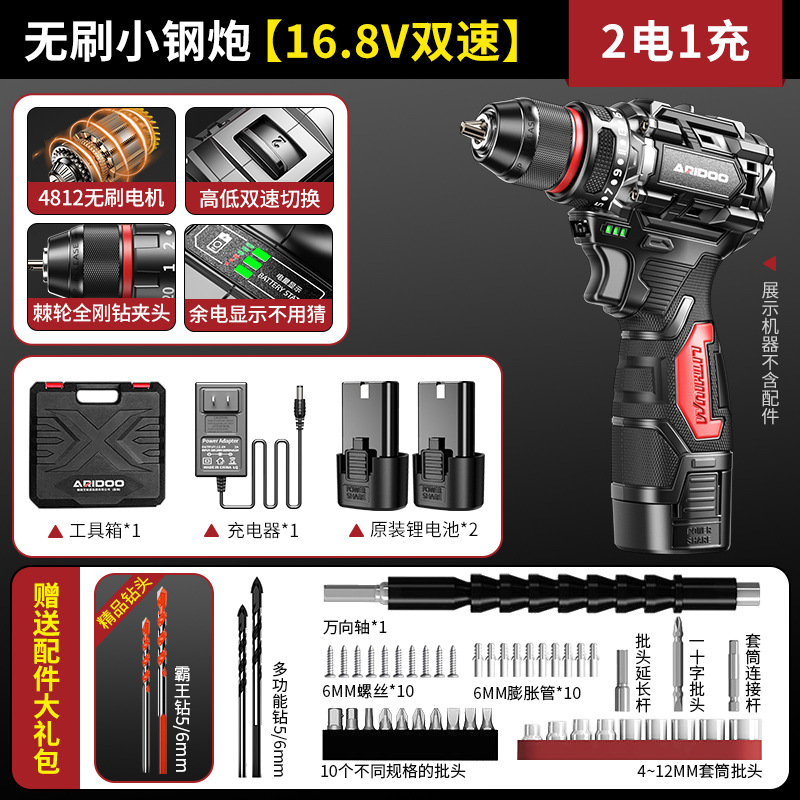 高品质-无刷小钢炮【16.8V双速2电1充】+赠送配件大礼包