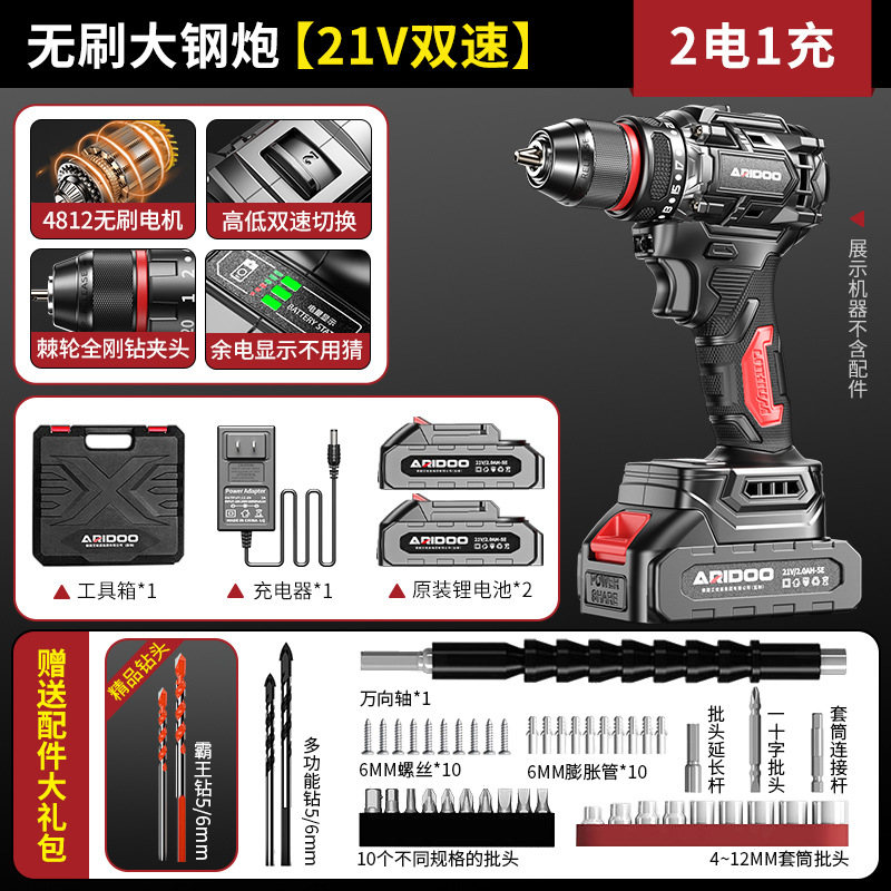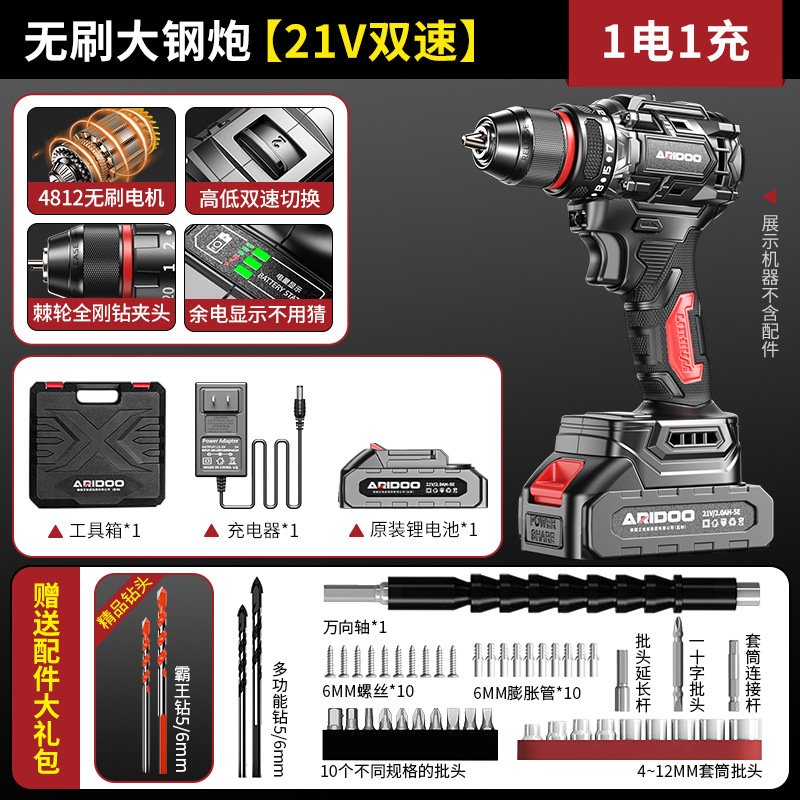 高品质-无刷大钢炮【21V双速2电1充】+赠送配件大礼包