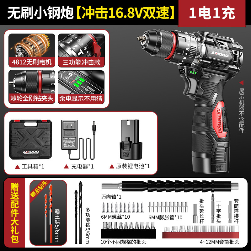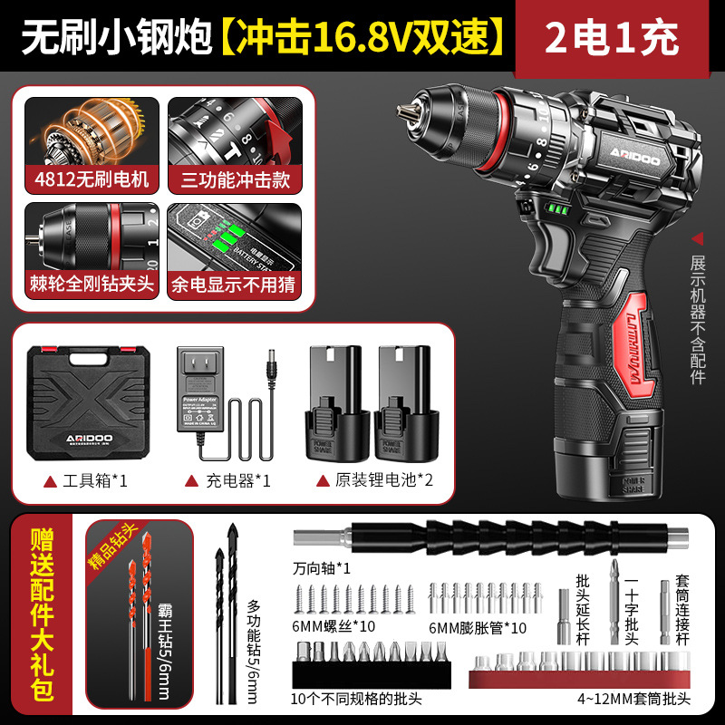 高品质-无刷小钢炮【冲击16.8V双速2电1充】+赠送配件大礼包