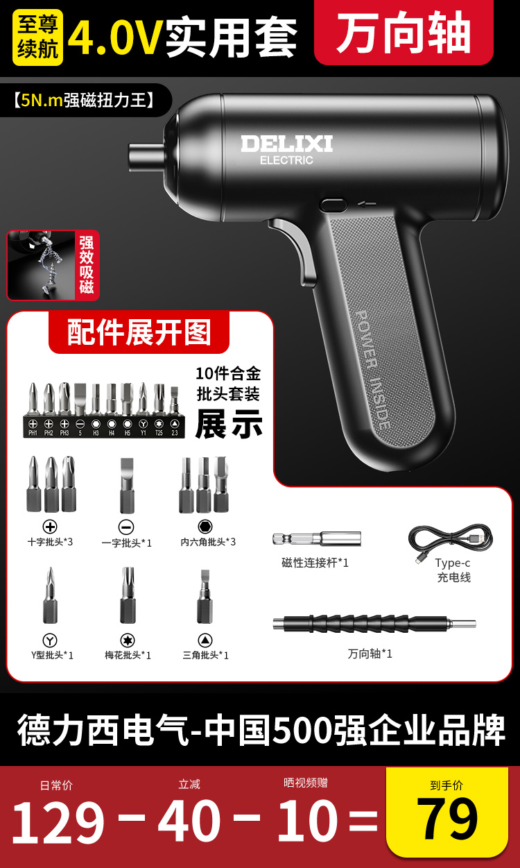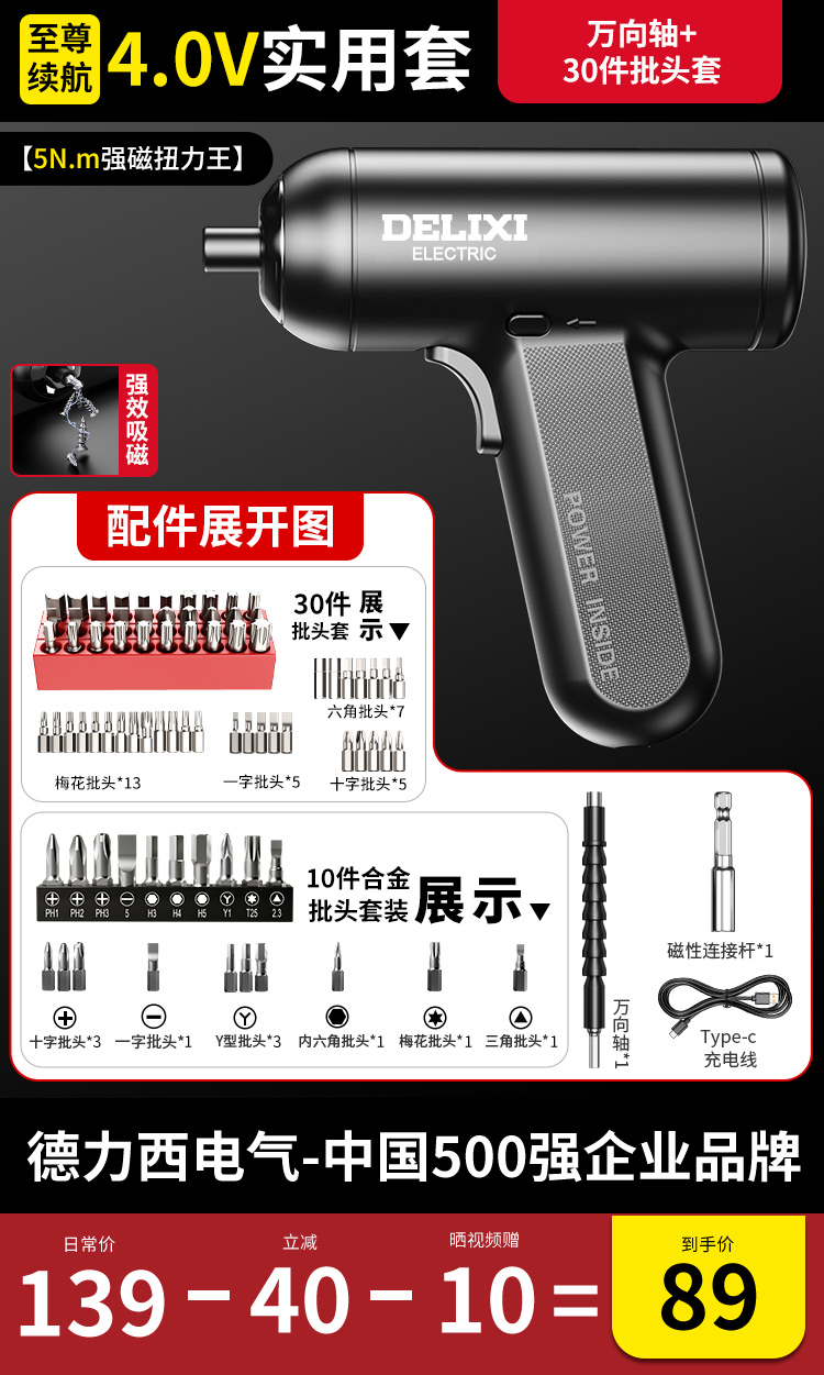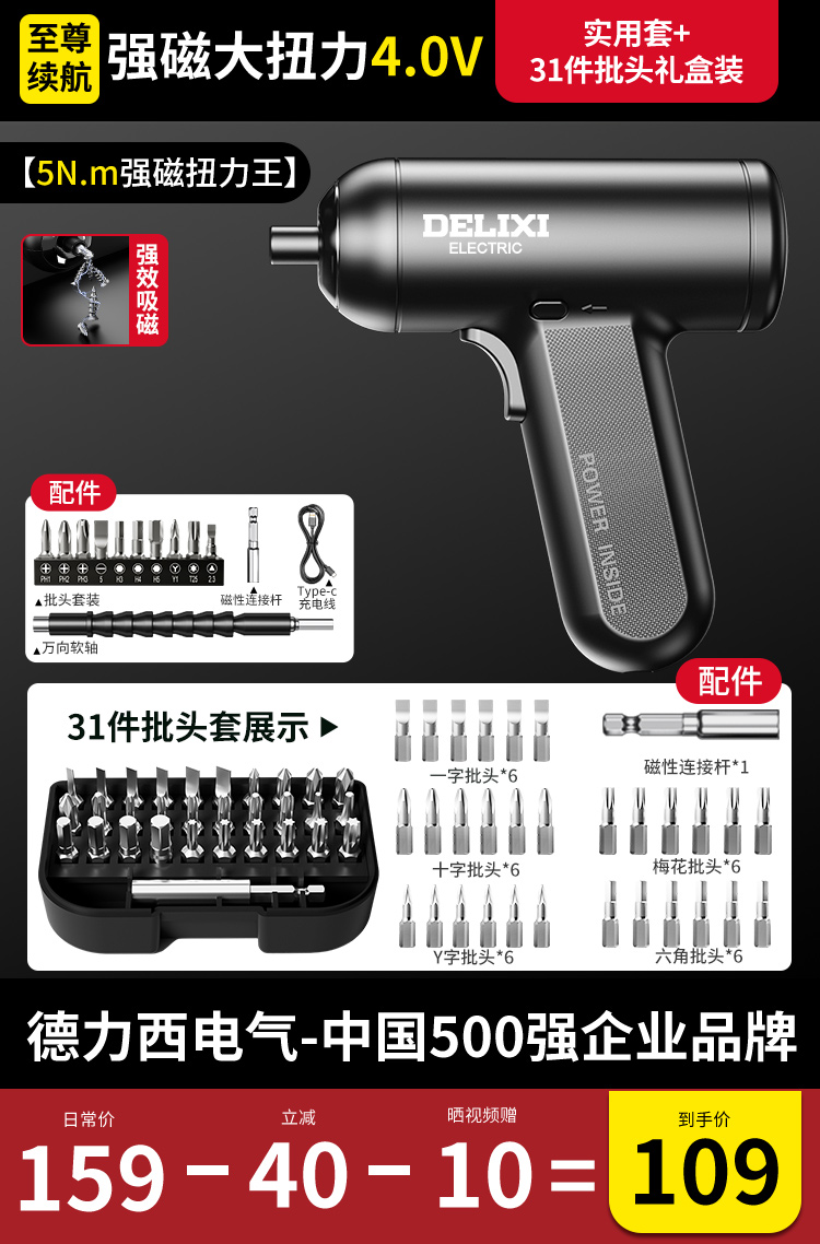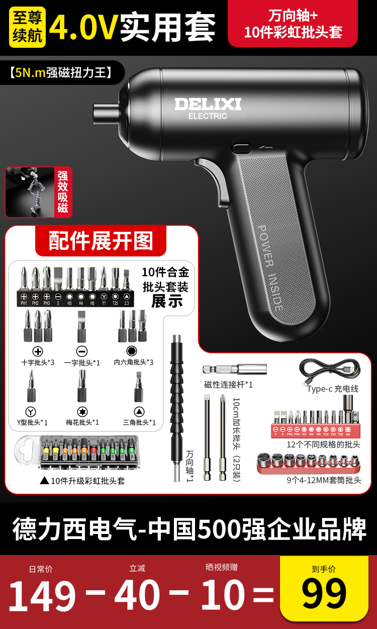 【强磁大扭力】4.0V全能套+10彩虹批头