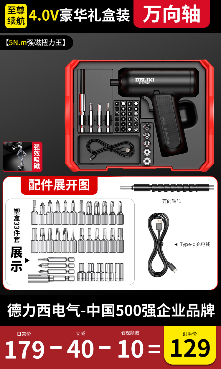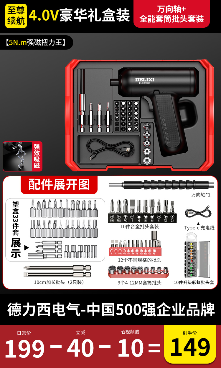 【强磁大扭力】4.0V豪华塑盒+全能套筒批头套装