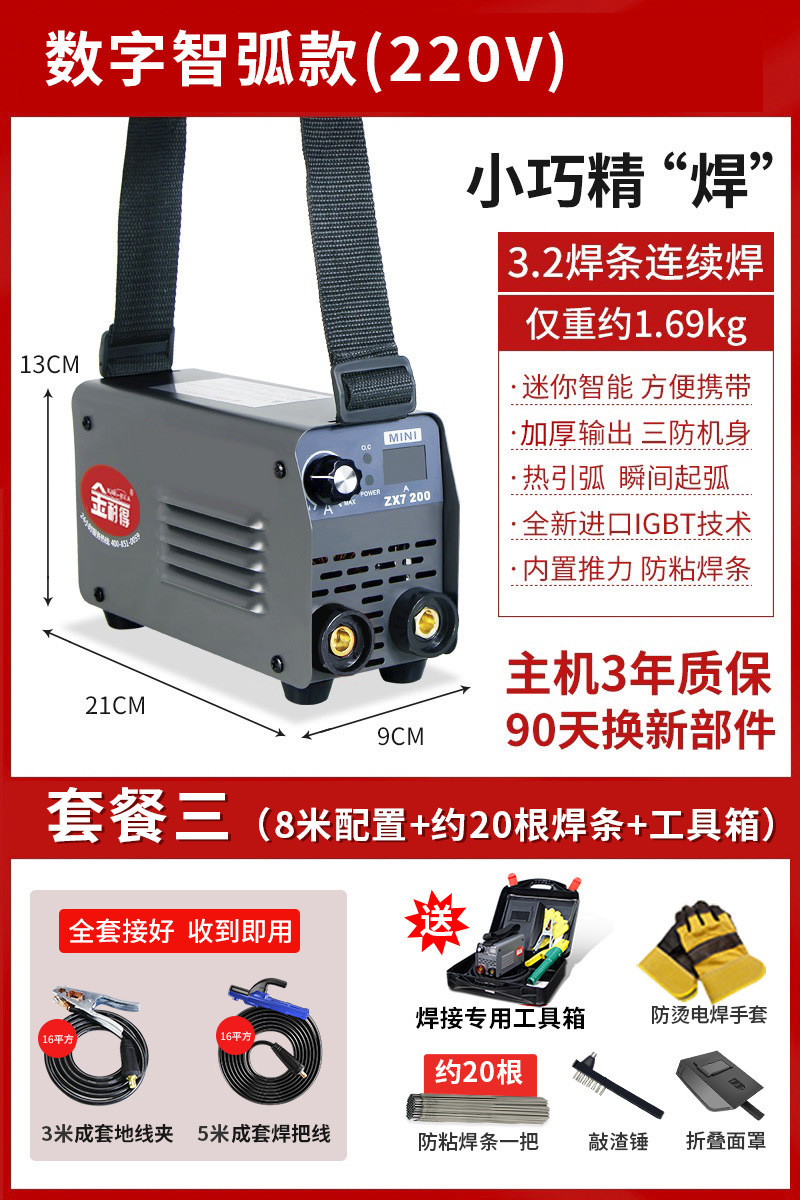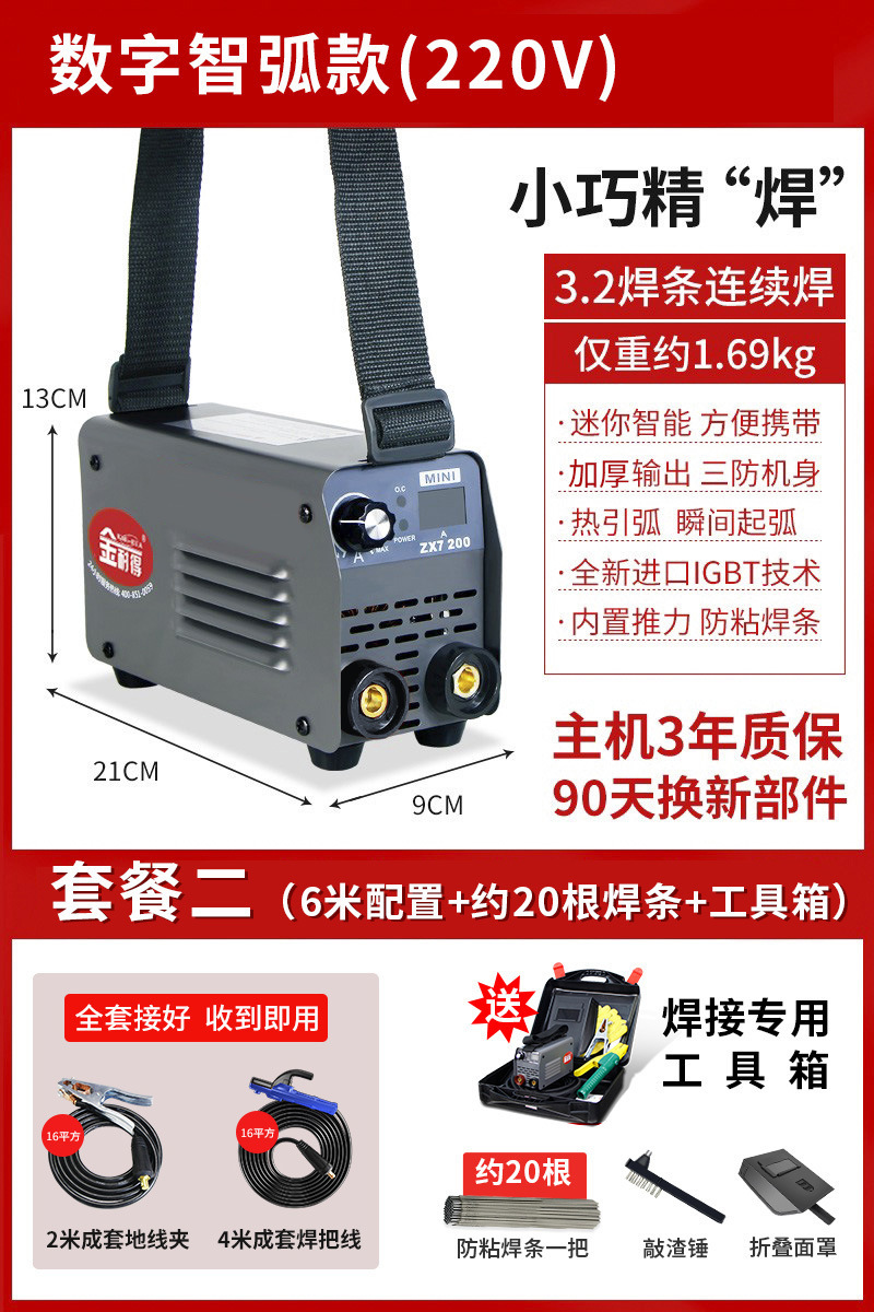 数字智弧款220V【套餐三】 (8米配置+20根焊条+工具箱)