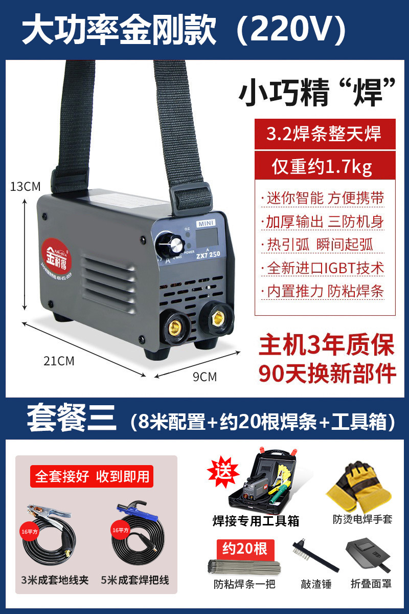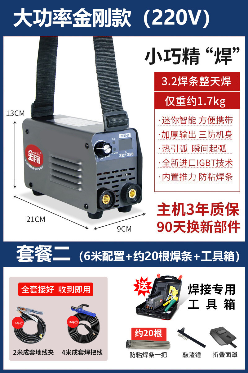 大功率金刚款220V【套餐三】 (8米配置+20根焊条+工具箱)