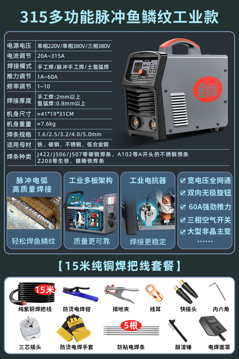 315多功能脉冲鱼鳞纹工业款【15米纯铜焊把线套餐】