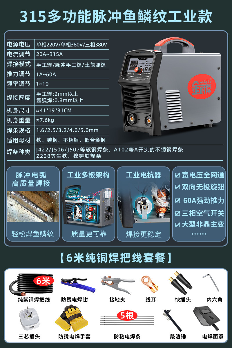 315多功能脉冲鱼鳞纹工业款【6米纯铜焊把线套餐】