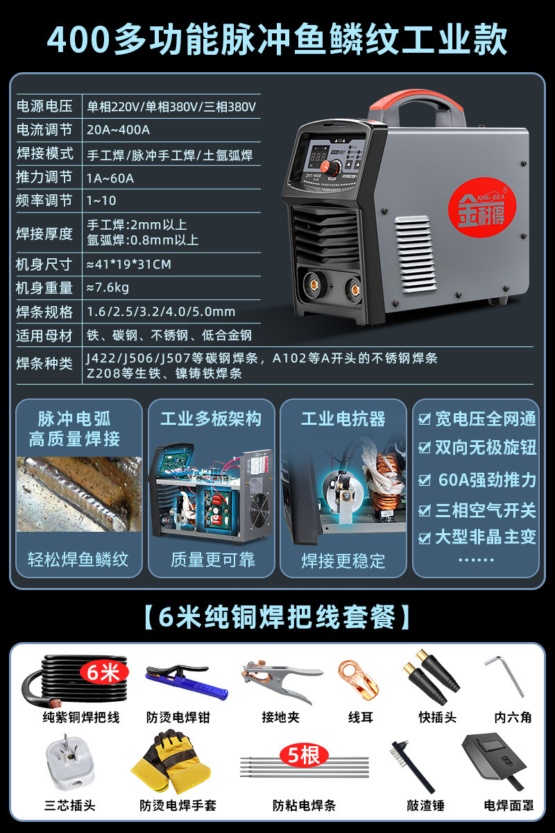 400多功能脉冲鱼鳞纹工业款【6米纯铜焊把线套餐】