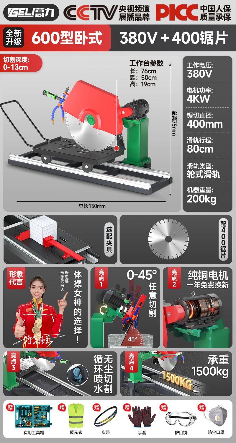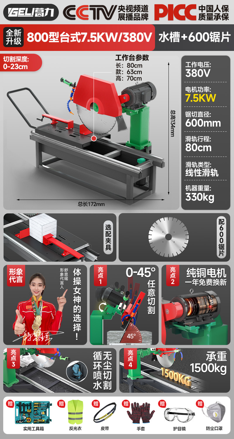 800型升级款7.5KW/380V+水槽送600锯片 送工具箱