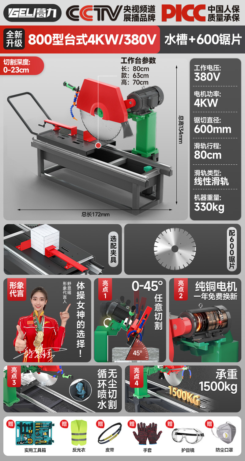 800型台式款4KW/380V+水槽送600锯片 送工具箱