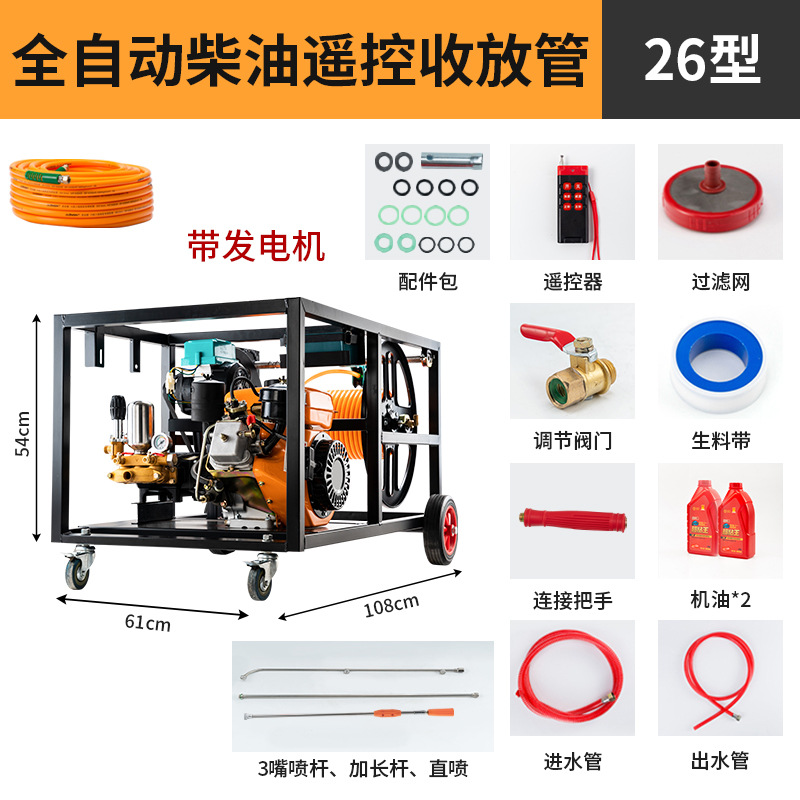 全自动柴油机遥控收放管26型带发电机+50米高压管