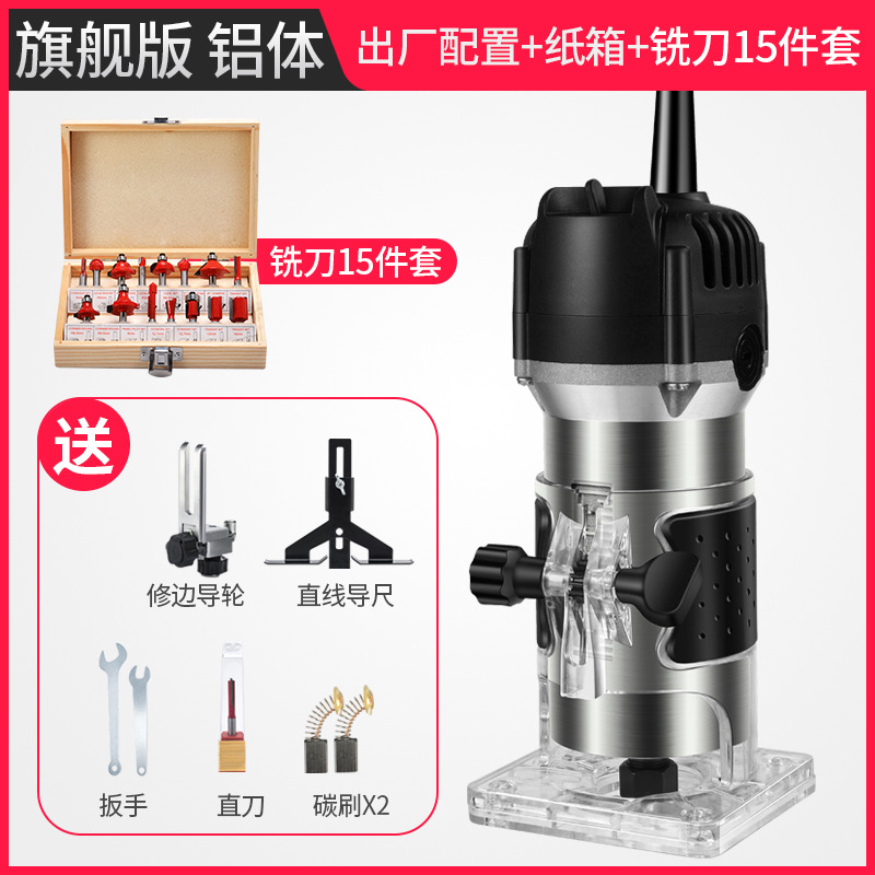 旗舰款铝体修边机+铣刀15件套(纸箱)