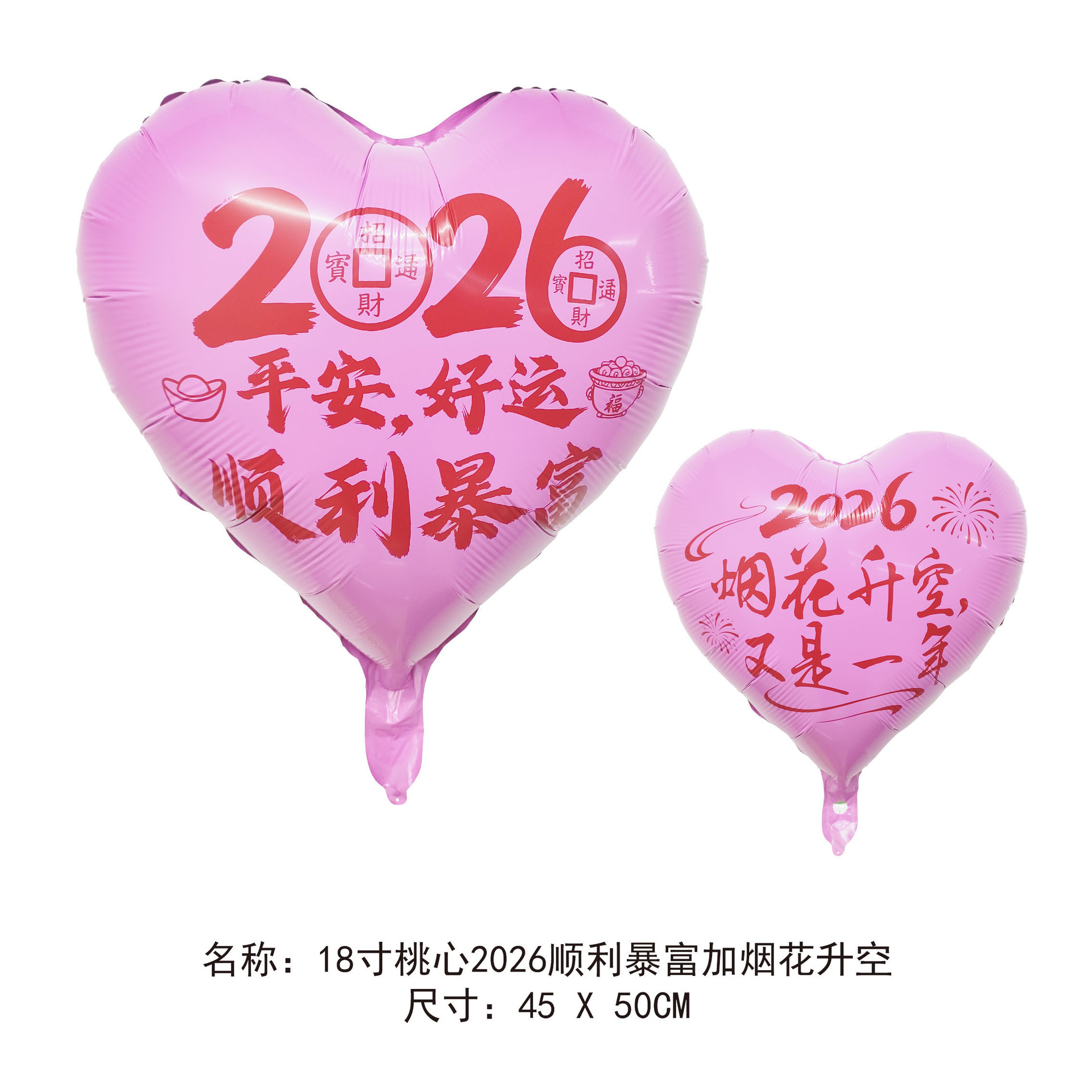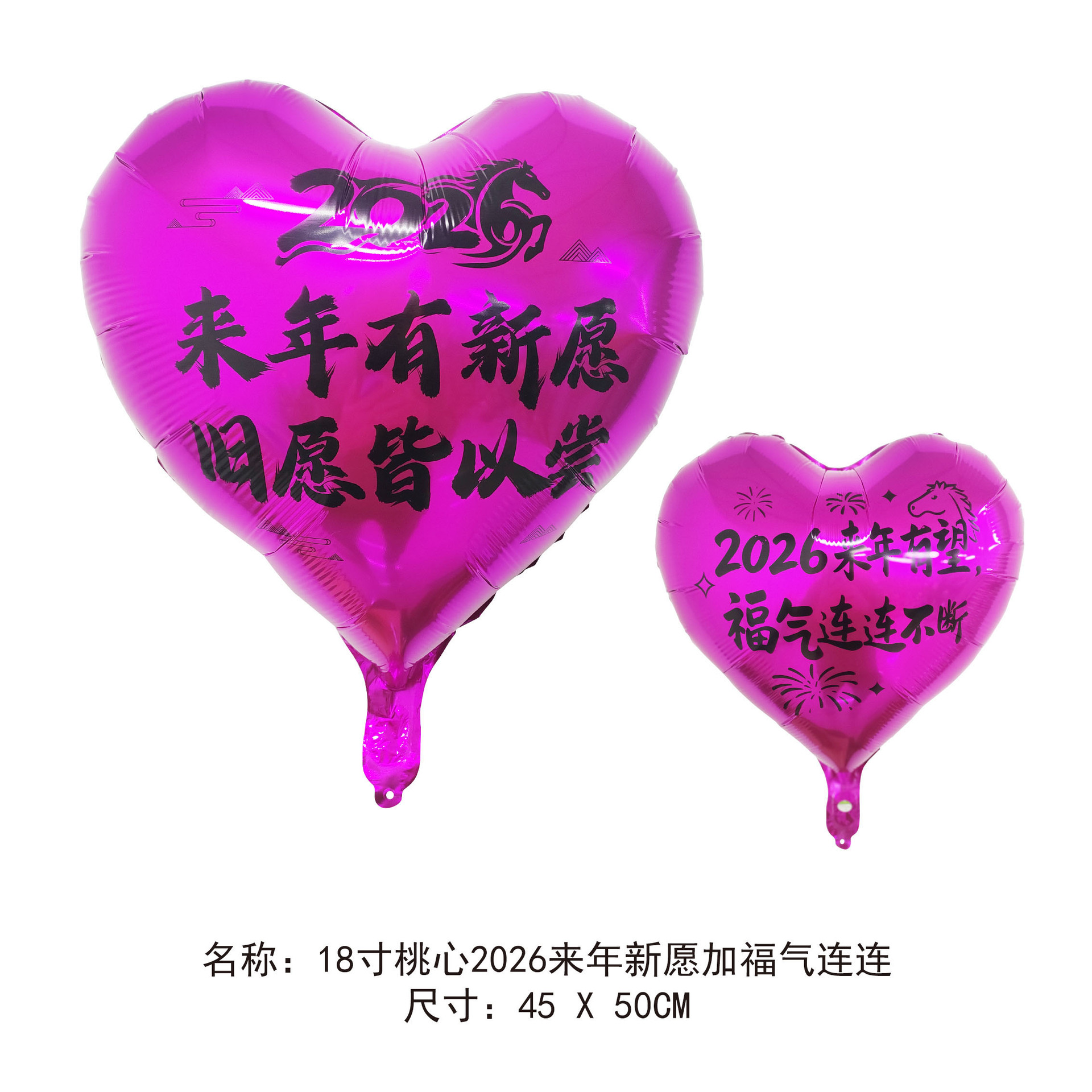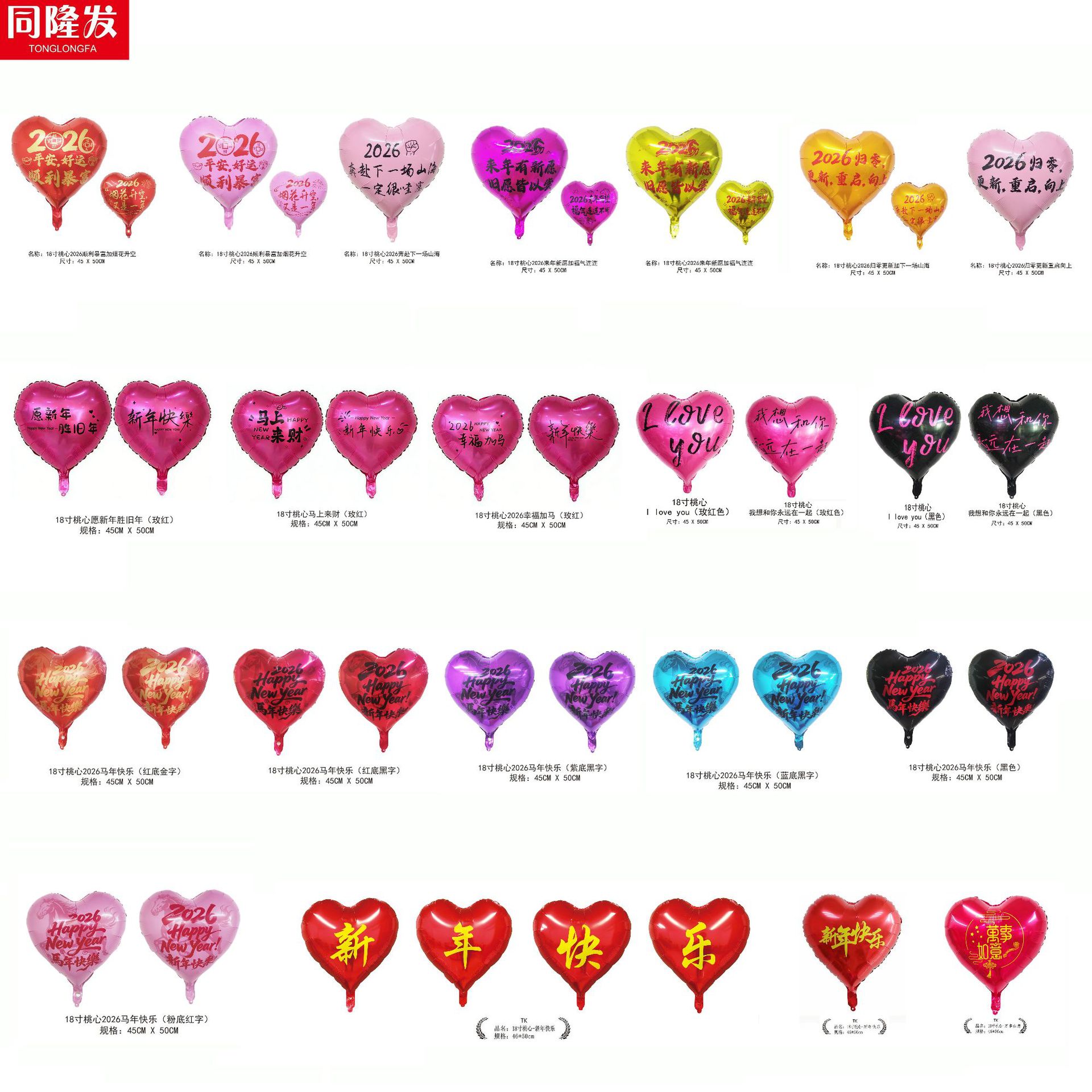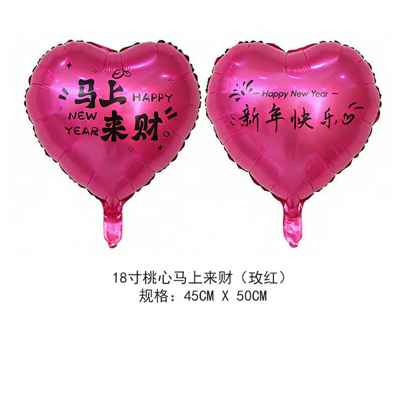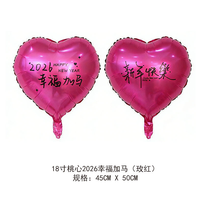 18-inch peach heart 2026 new year's new wish to add blessing gas continuous connection (ab surface rose red background black words)