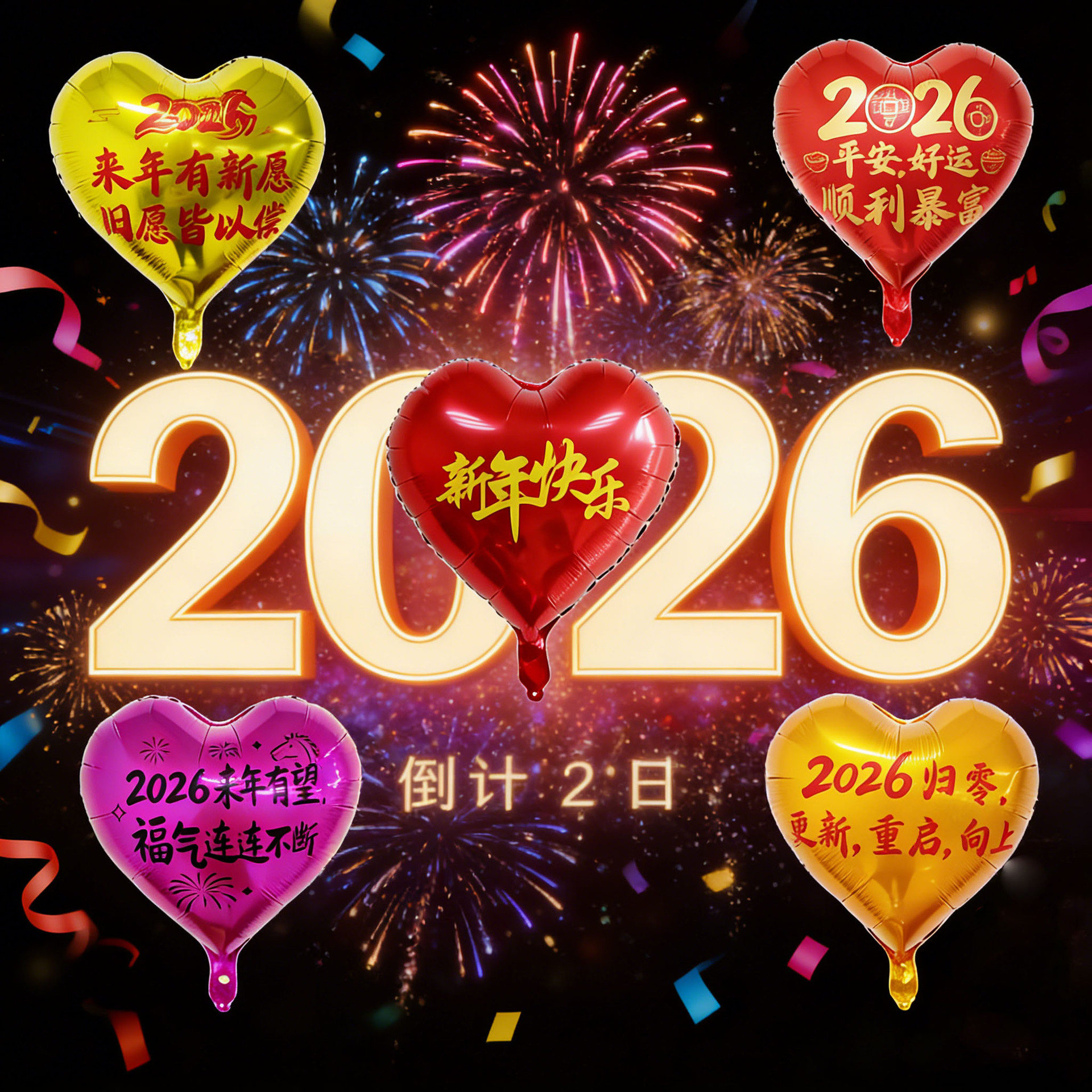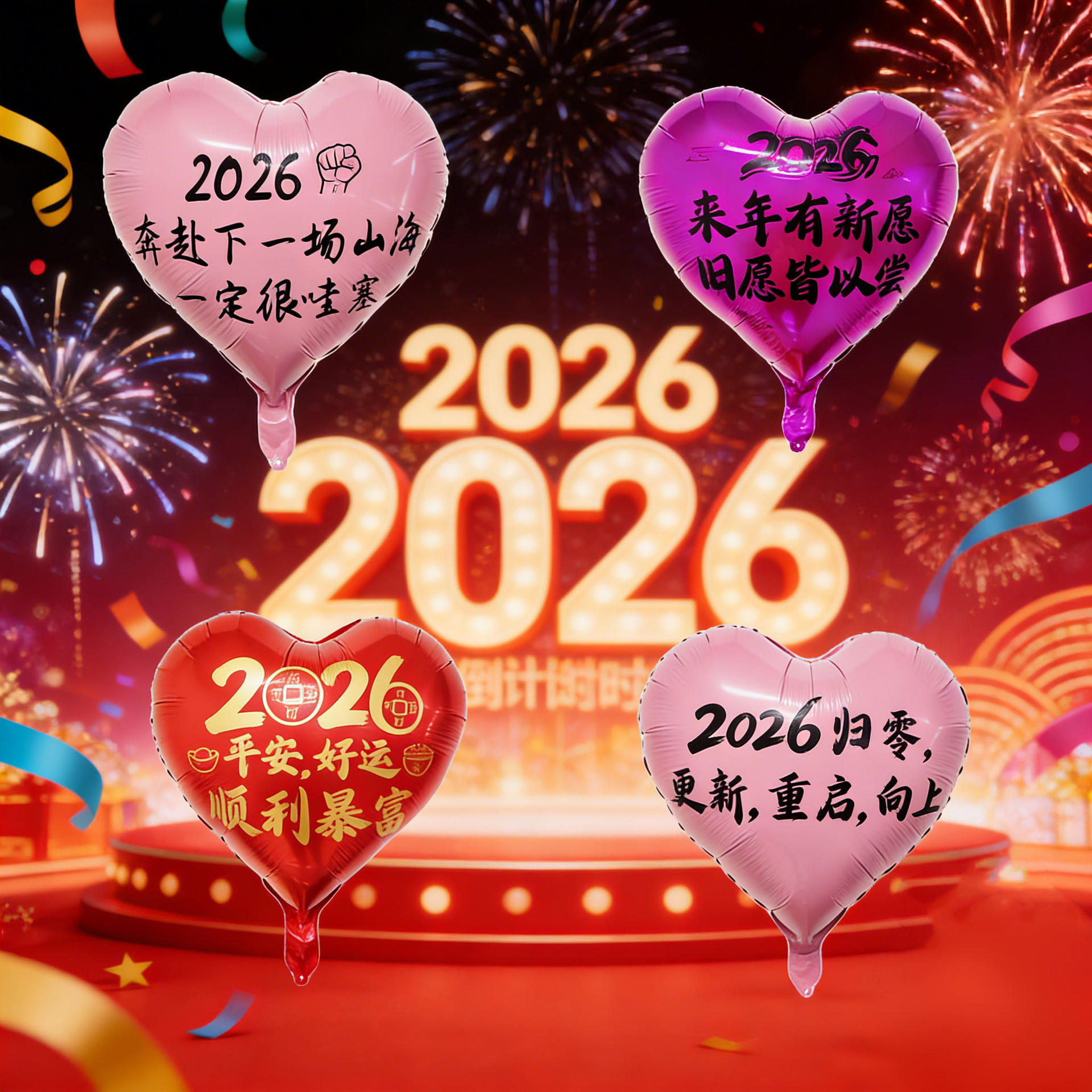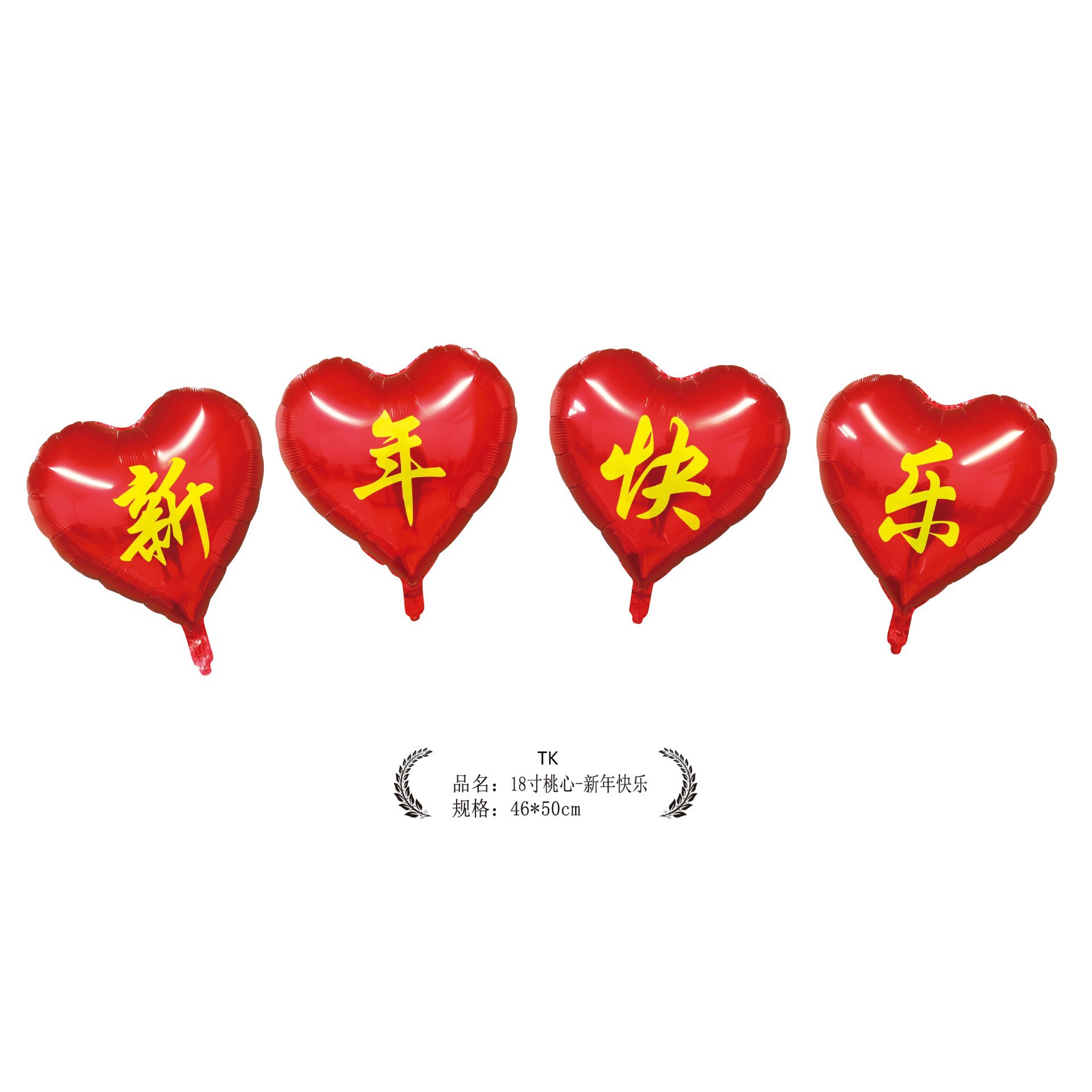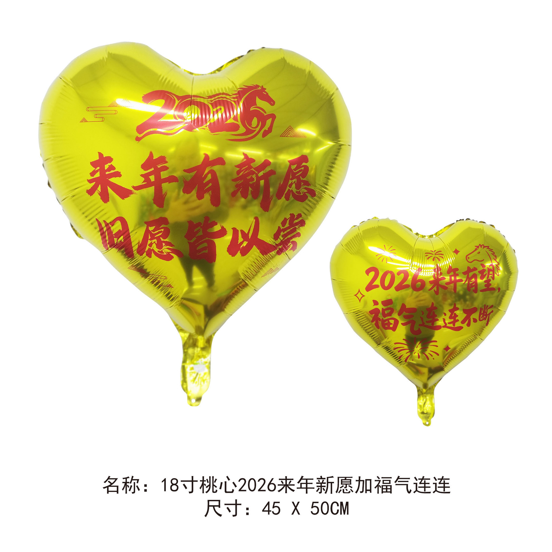 18-inch peach heart 2026 new year's new wish to add blessing gas continuous connection (ab surface rose red background black words)