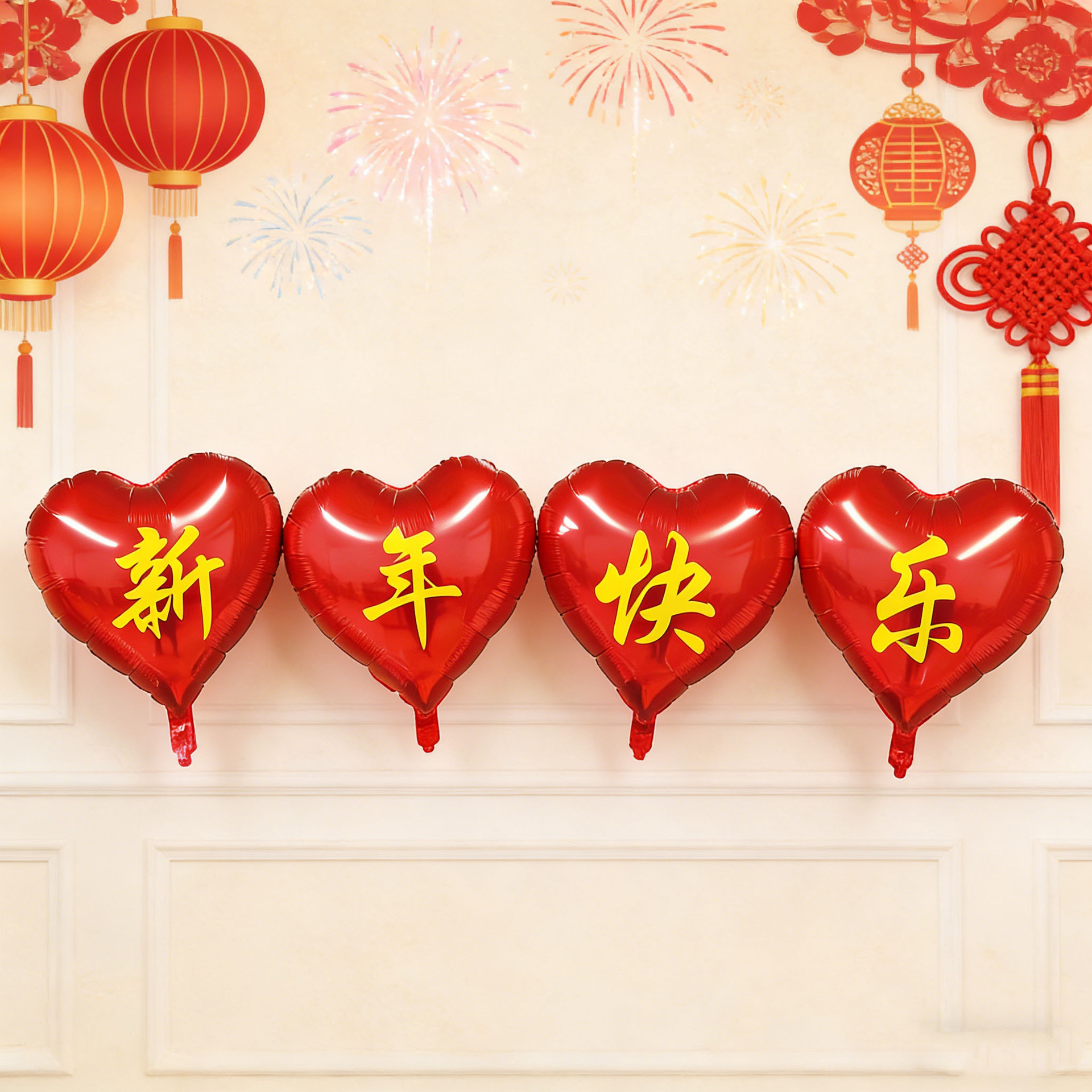 18-inch happy year of peach heart horse (ab red background with gold characters)
