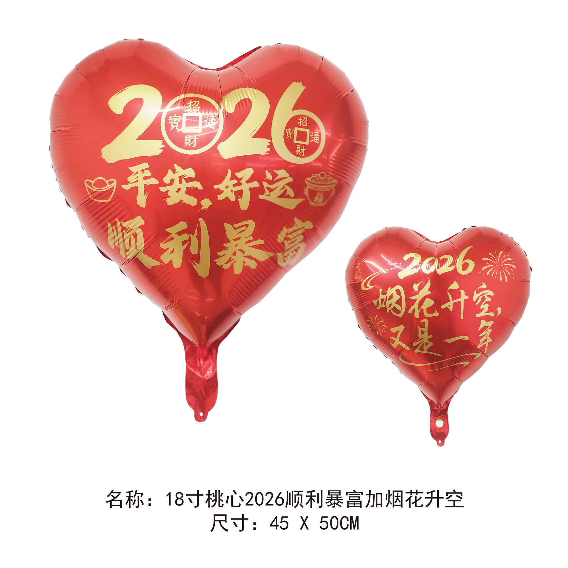 18-inch peach heart 2026 successfully increased wealth and fireworks (ab red background with gold characters)