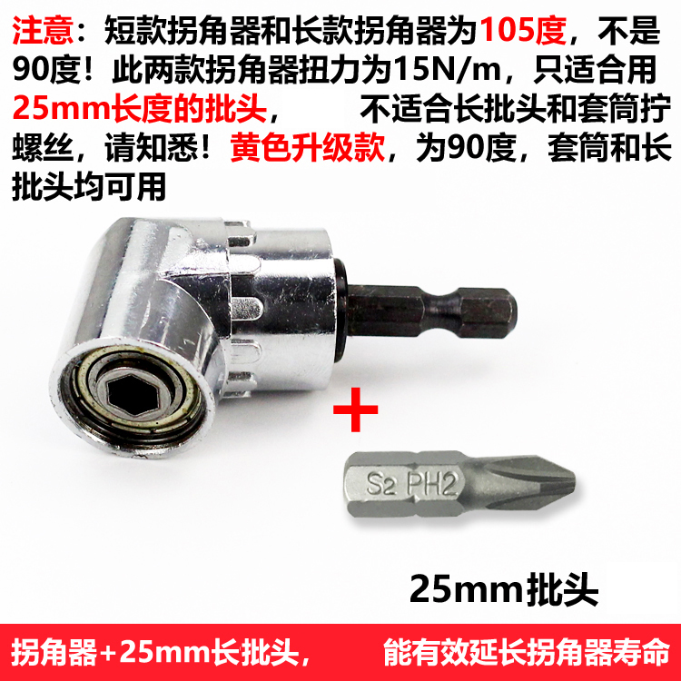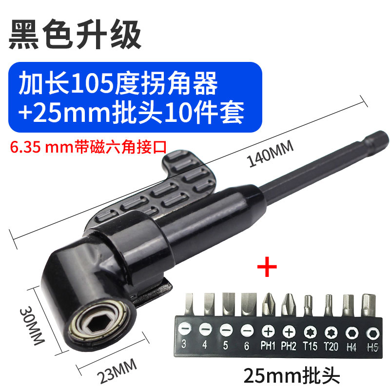 【黑色】加长拐角器+25mm批头1支