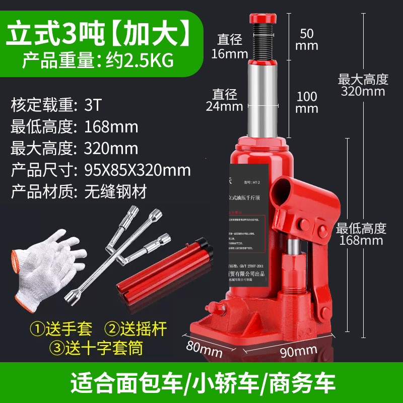 国标液压立式(3吨)【加厚加大款】+十字扳手