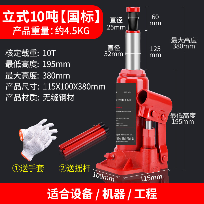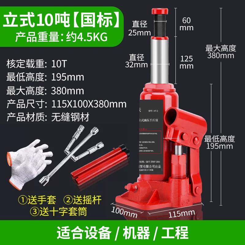 国标液压立式(10吨)【加厚款】+十字扳手