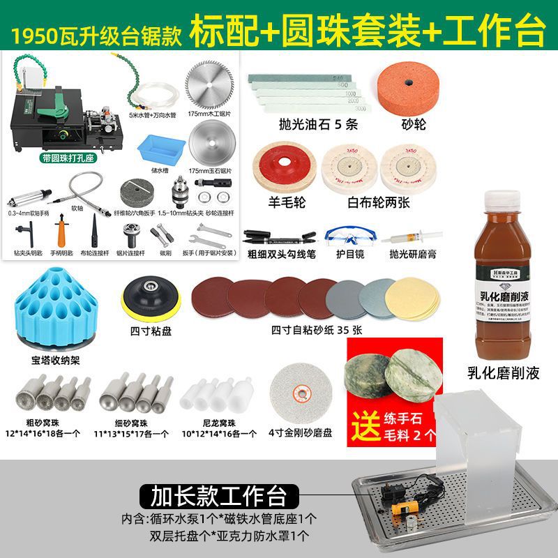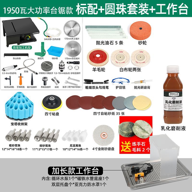 升级台锯款(带圆珠打孔底座)-标配+玉雕套装+水循环工作台