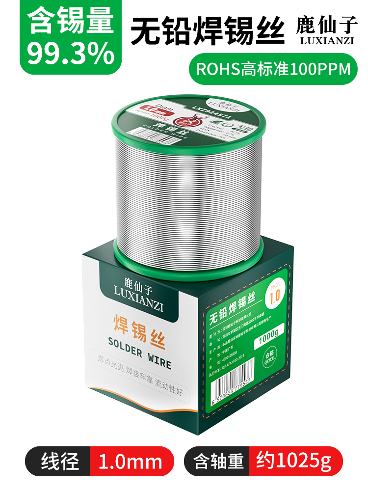 ◕⁋▧99.3%无铅锡线1.0(足量500g) 独立包装 含轴约525G▼◄