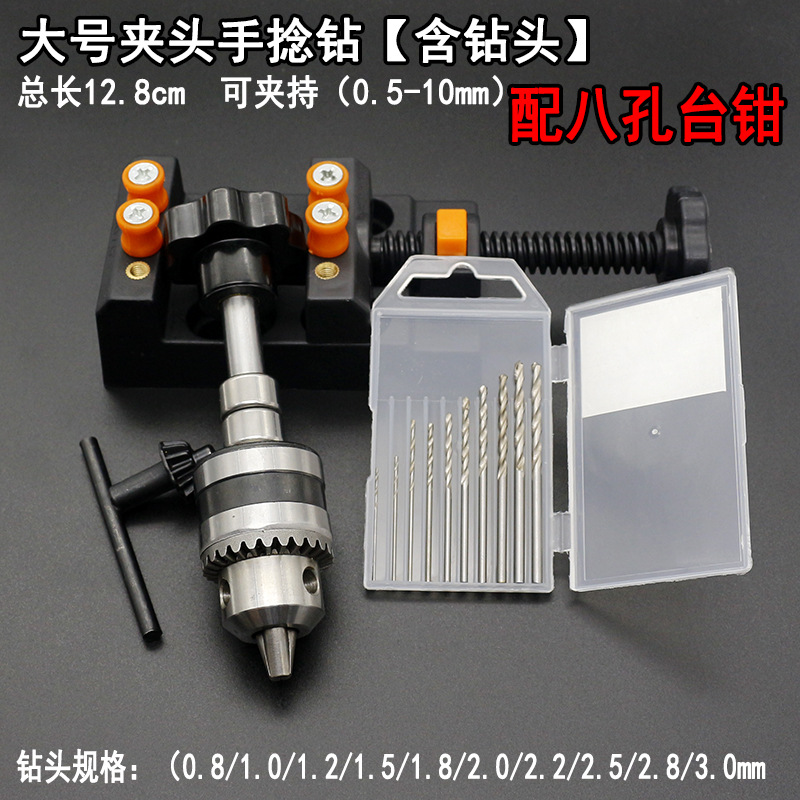 大号夹头手捻钻【含钻头+台钳】