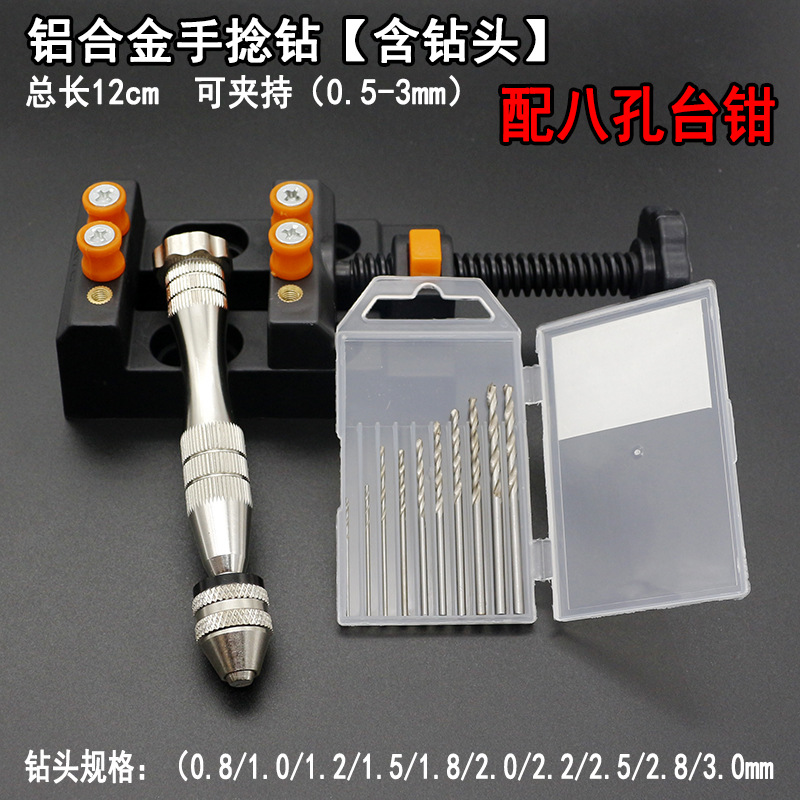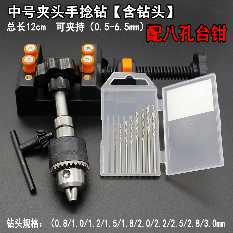 中号夹头手捻钻【含钻头+台钳】