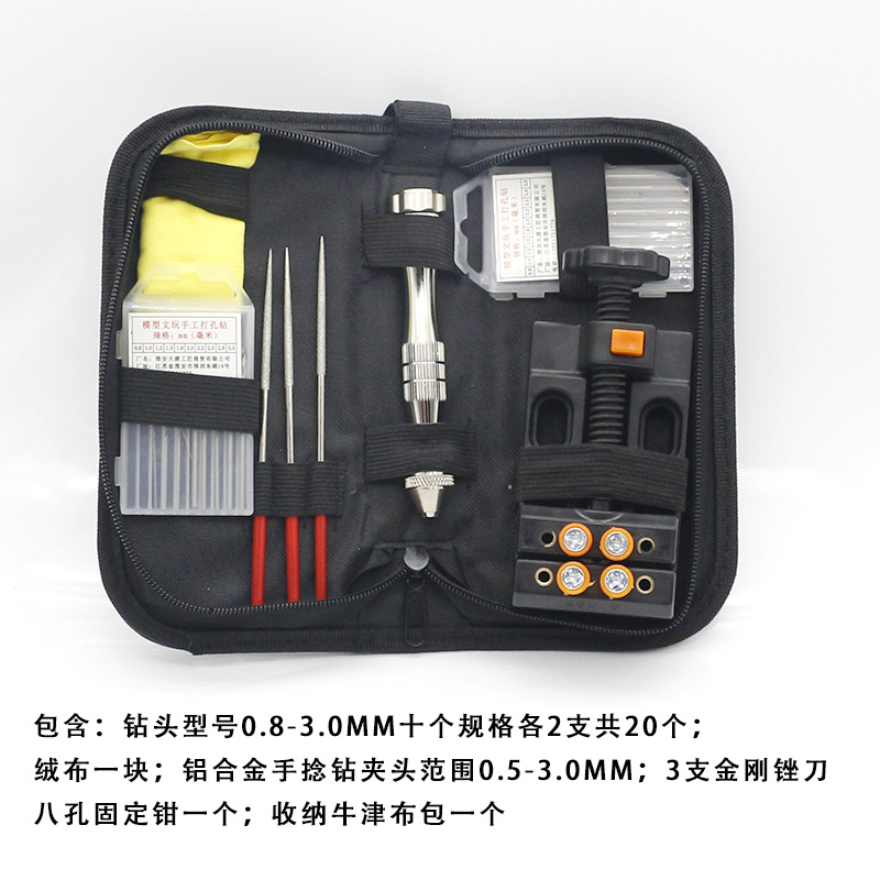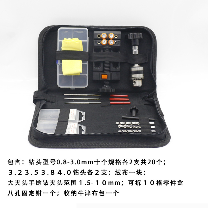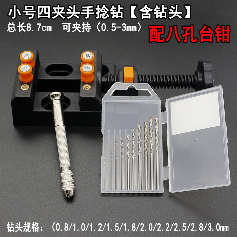 小号四夹头手钻【含钻头+台钳】
