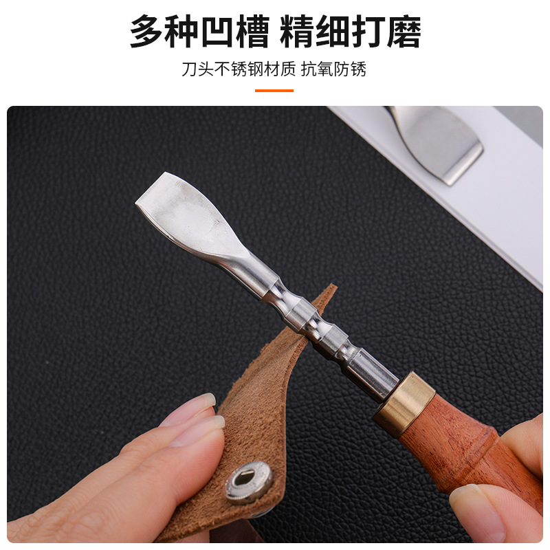 烫边+打磨一体多功能皮革工具-红彩木材质-打磨卡槽直径4,5, 7mm