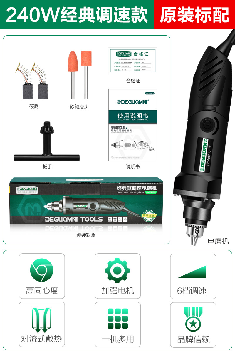 【240W/6档调速/0.6-6.5夹持】原装标配