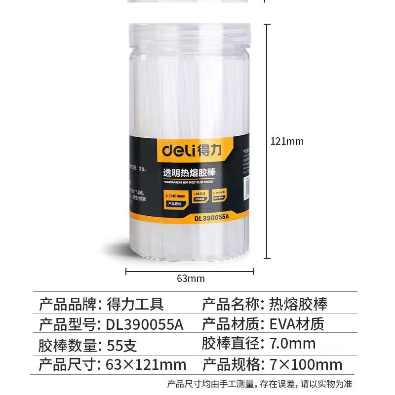 得力透明胶棒55支筒装7*100MM