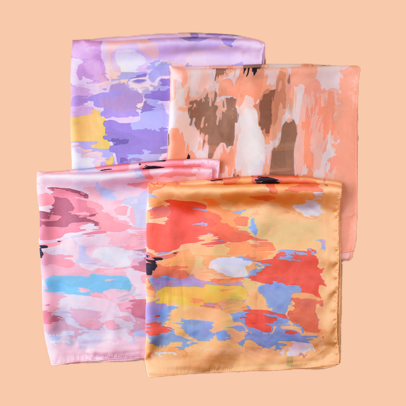 new women's 70cm square scarf geometric color plaque printing silk scarf satin chiffon wholesale source factory scar