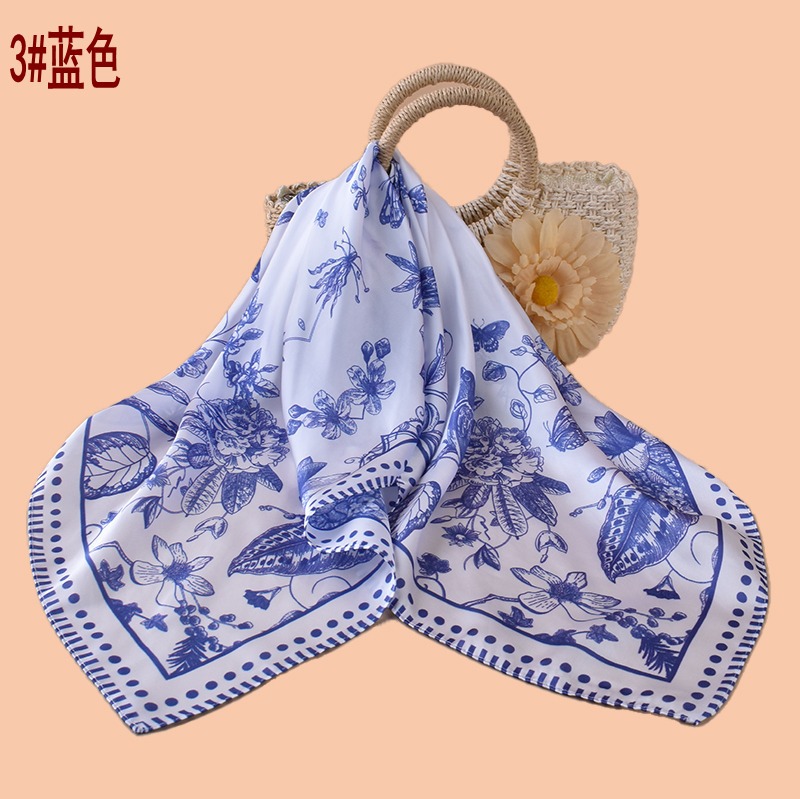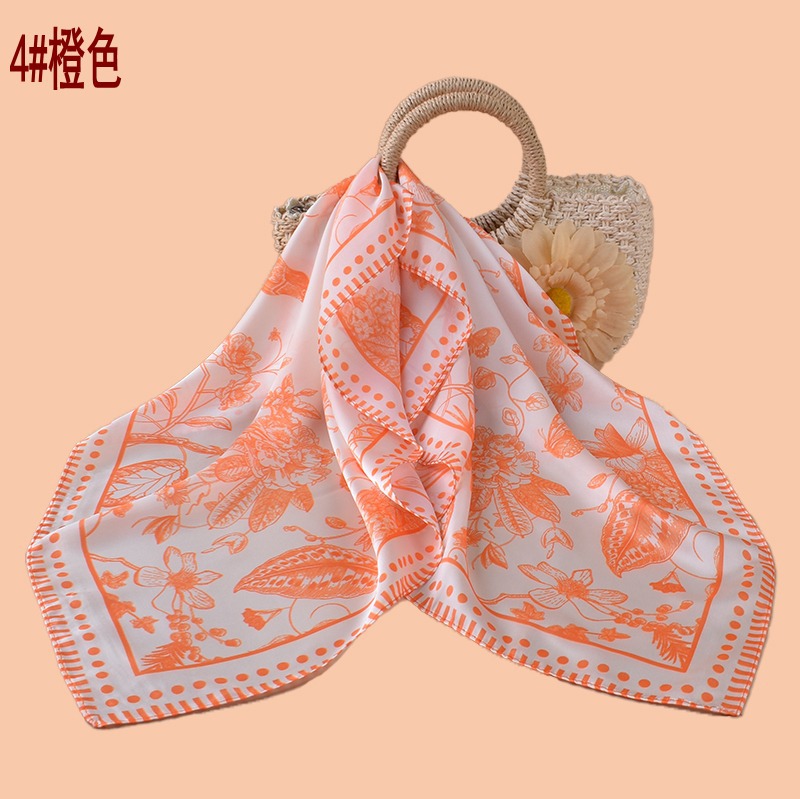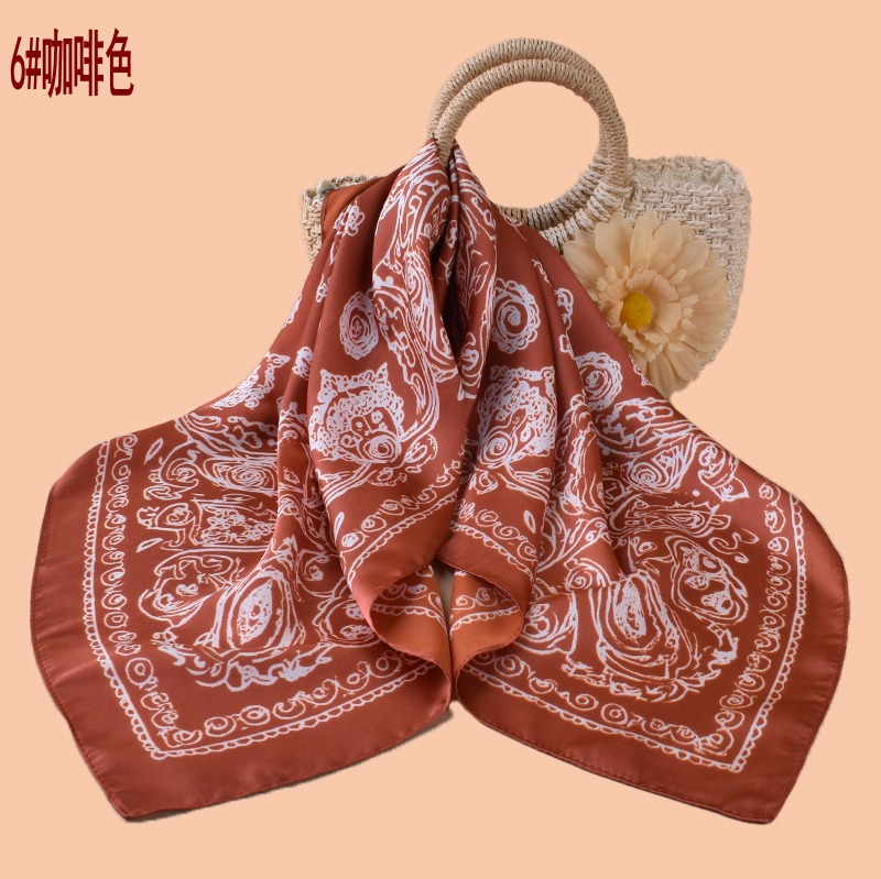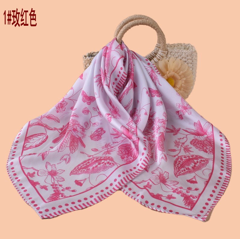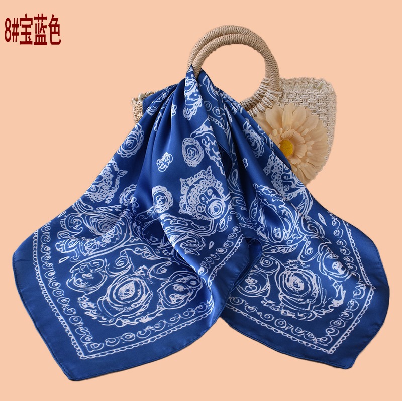 new women's 70cm square scarf classical flower fashion vintage printed silk scarf satin chiffon wholesale source factory