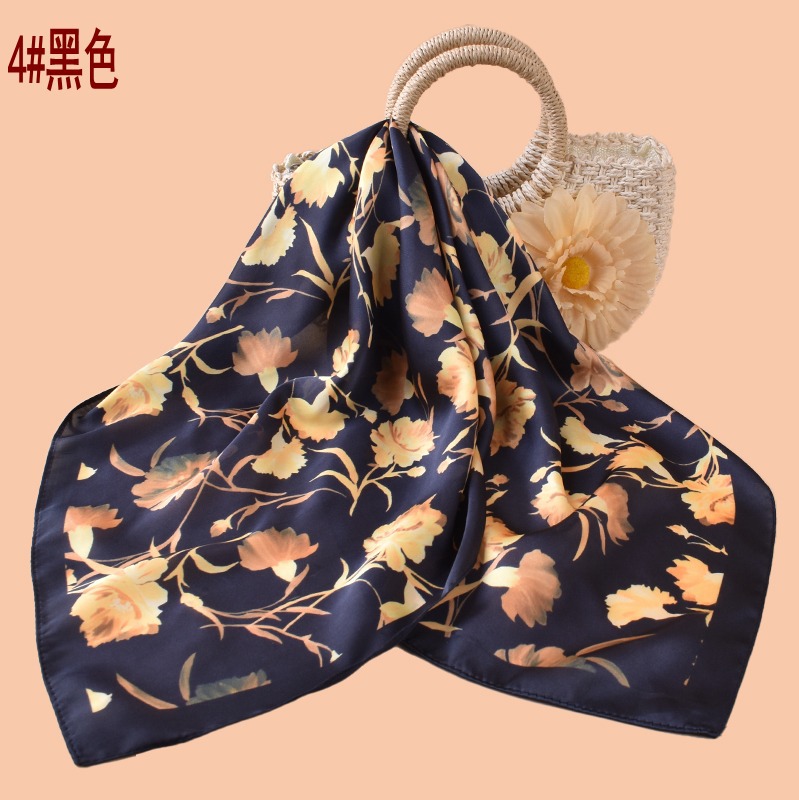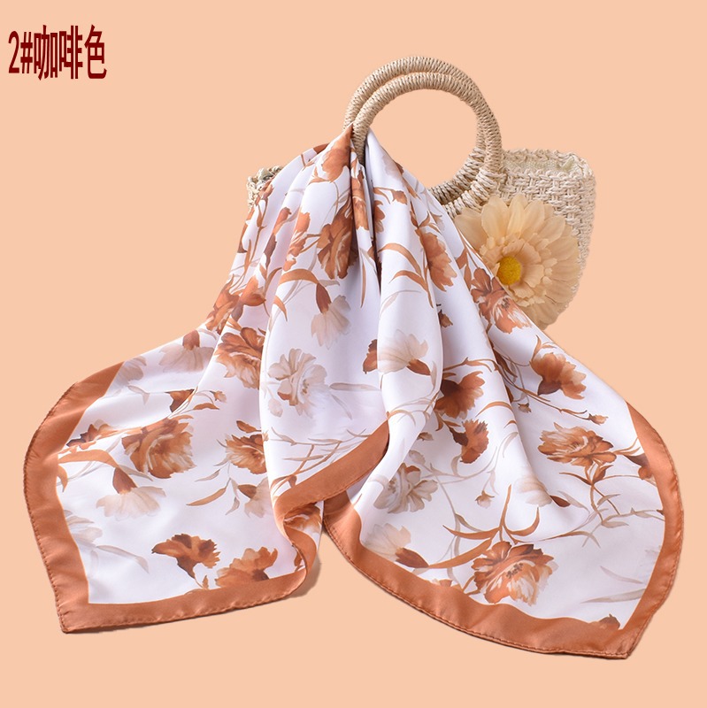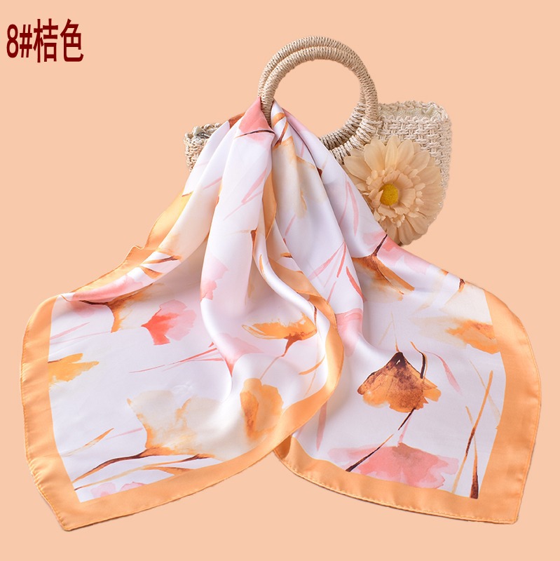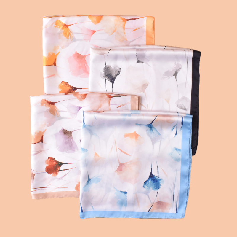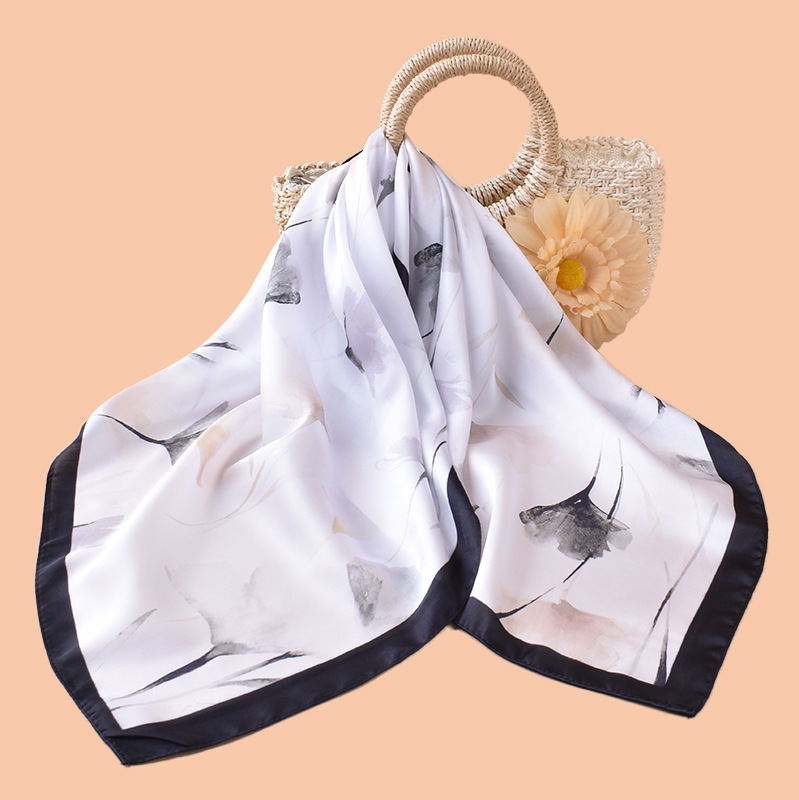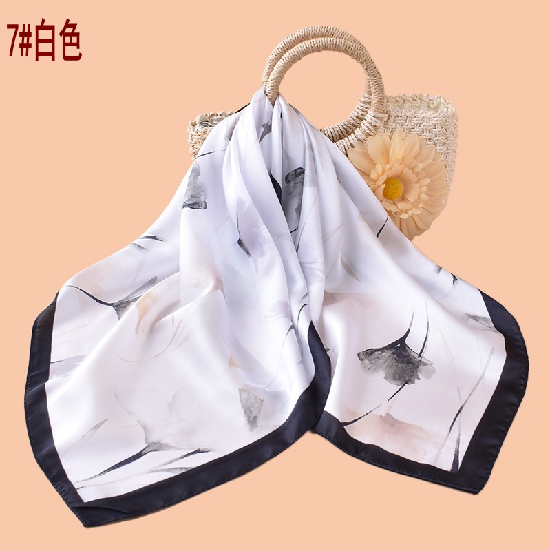 new style women’s 70cm square scarf, elegant retro watercolor print silk scarf in satin chiffon—wholesale from the factory direct